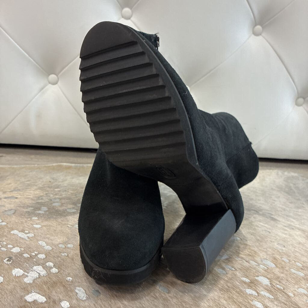 Crafted from luxurious black suede with a durable rubber outsole, these boots are fully waterproof, making them ideal for changing weather conditions. The platform sole enhances comfort while providing extra lift, perfect for extended wear.