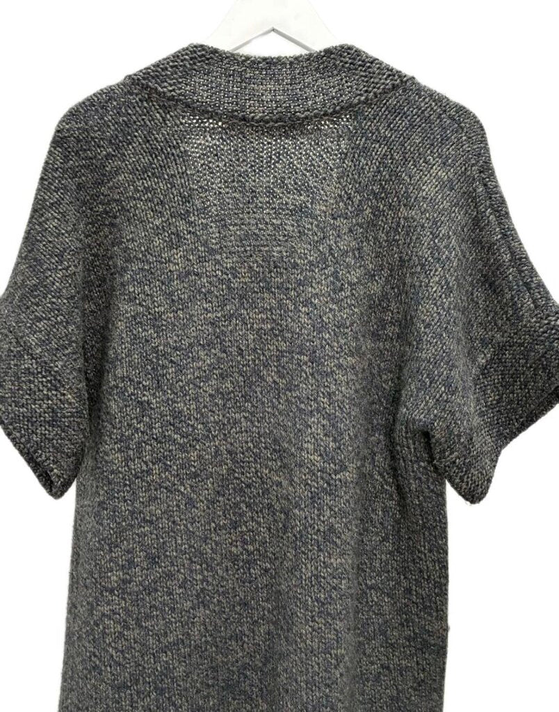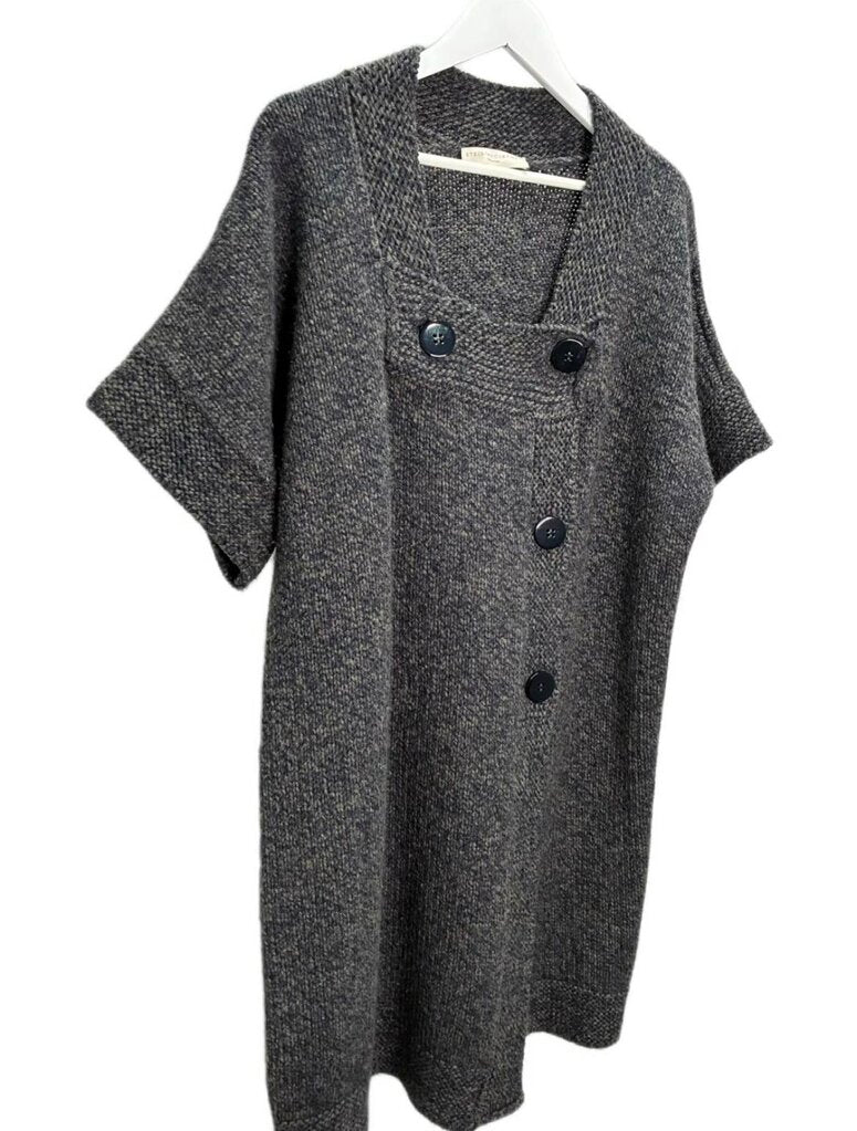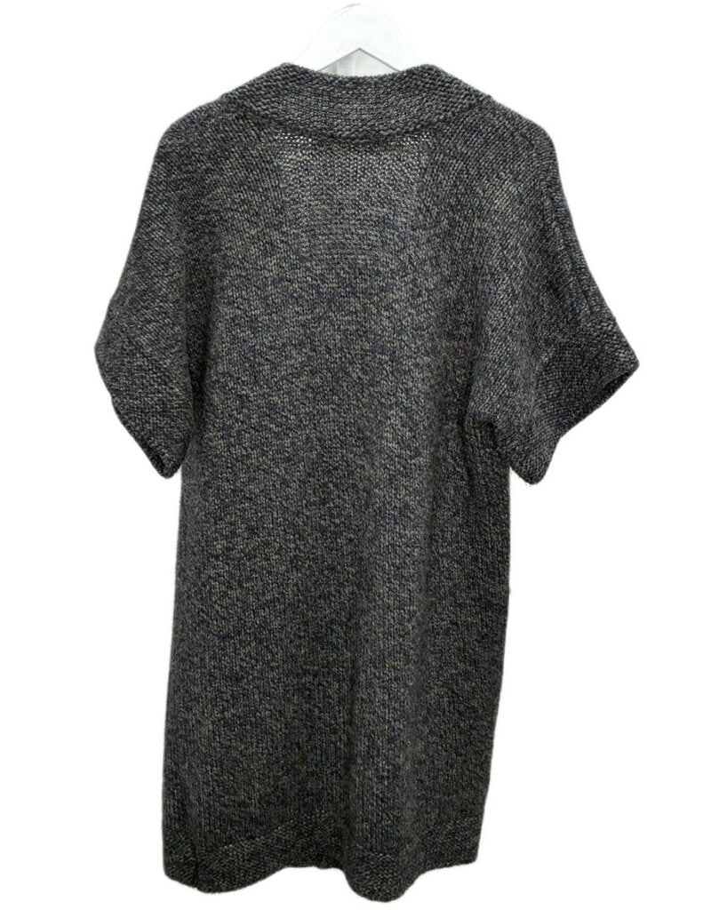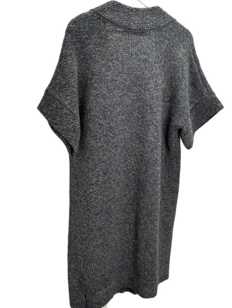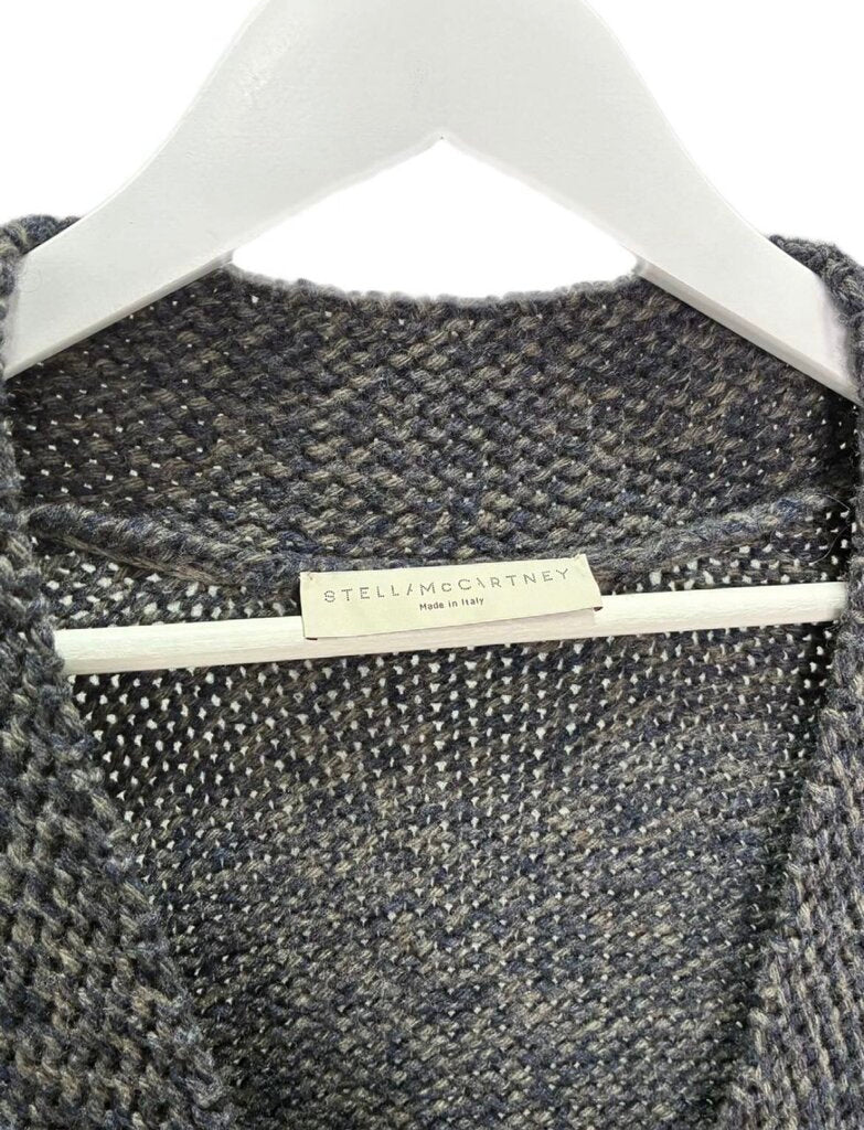 Crafted from a luxurious blend of 80% wool and 20% cashmere, this Stella McCartney sweater dress features a sophisticated knit in a mix of navy blue and grey tones. The design highlights a distinctive square neckline with wide short sleeves for a modern silhouette.