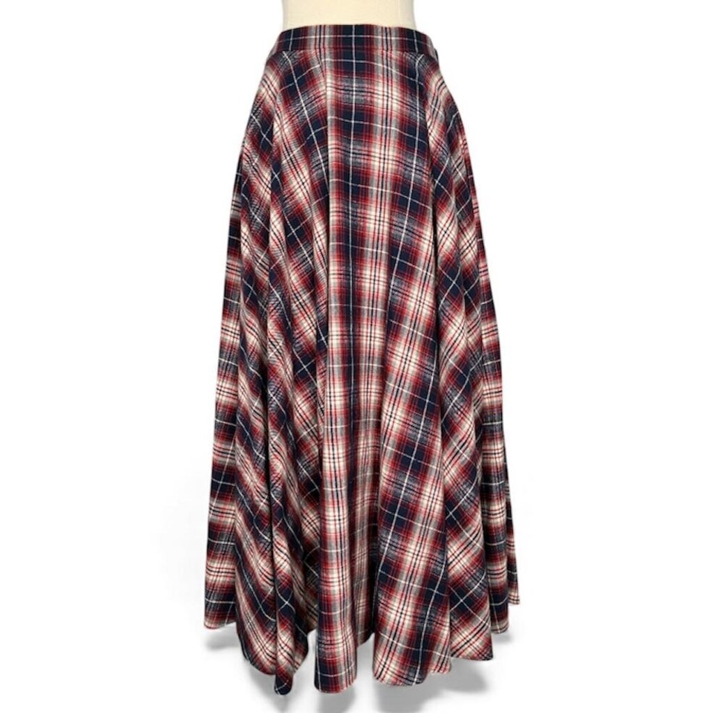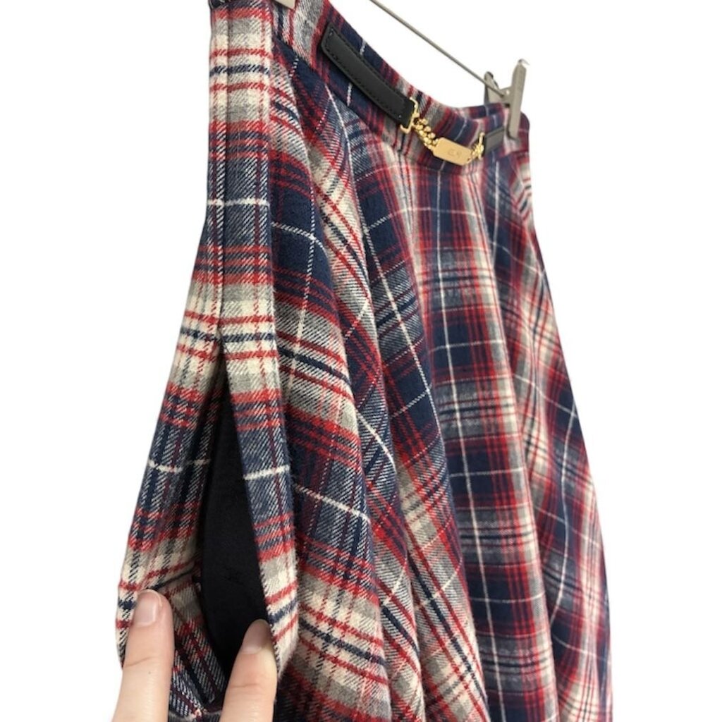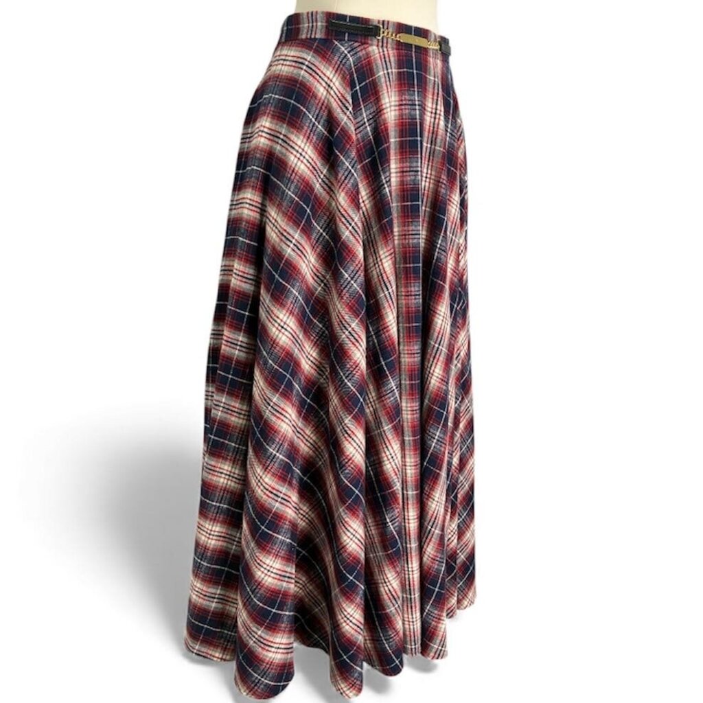 CELINE Cotton Tartan Maxi Skirt – Size 38 – Signature Gold CELINE Link Waist Plaque