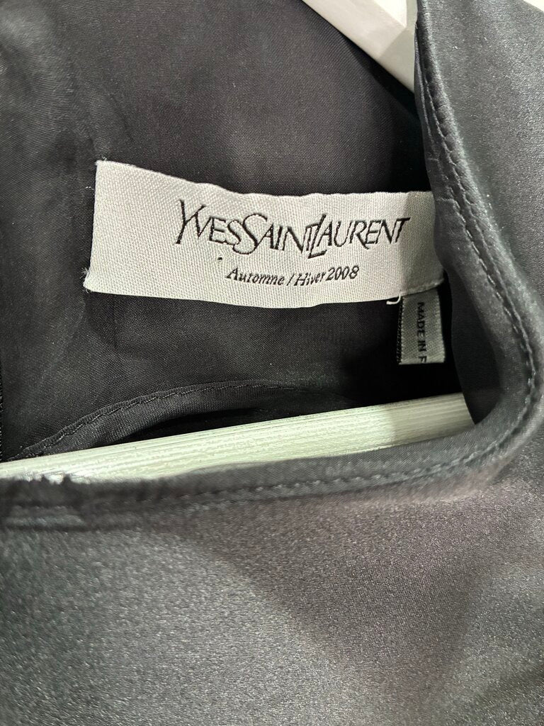 From Yves Saint Laurent’s Fall/Winter 2008 collection, this elegant satin dress is crafted in France from 100% silk in timeless black. The design features a structured balloon skirt that creates a refined, voluminous silhouette, balanced by a classic fitted bodice.