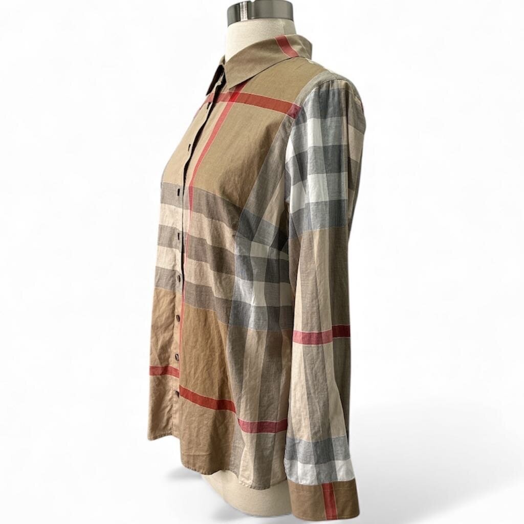 Burberry London Nova Check Button-Front Shirt — Size 44