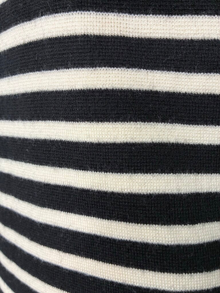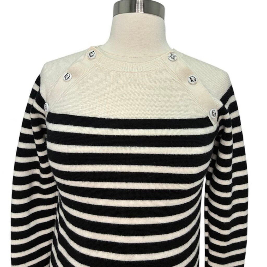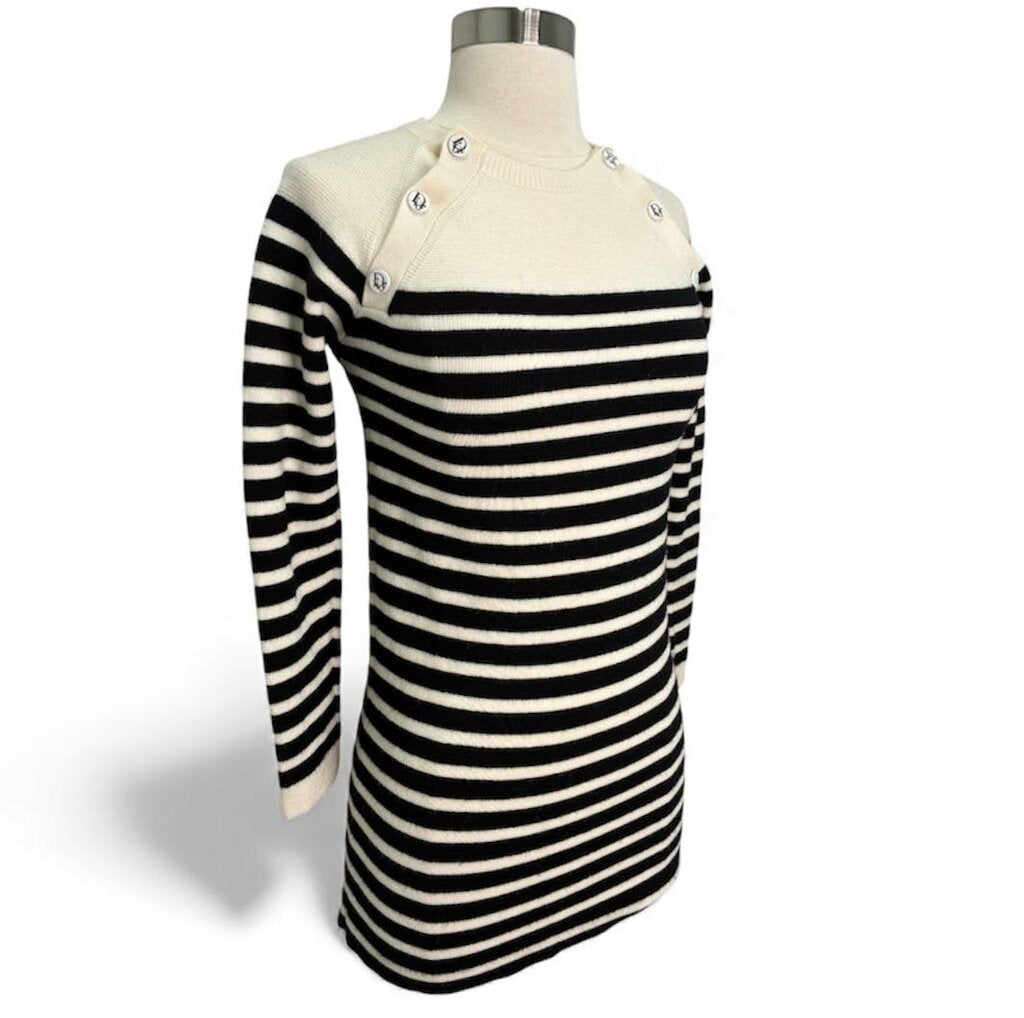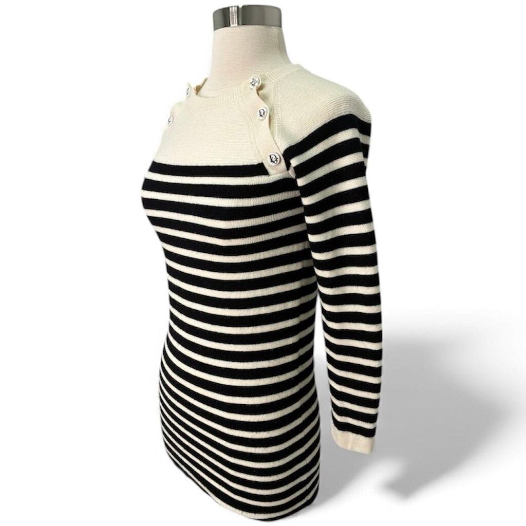 This is a true Dior Enfant collectible with that unmistakable early 2000s Galliano charm. Crafted in a soft and stretchy 100 percent wool knit, this long sleeve black and white nautical striped dress features Dior’s classic marinière styling elevated with rare novelty hardware.