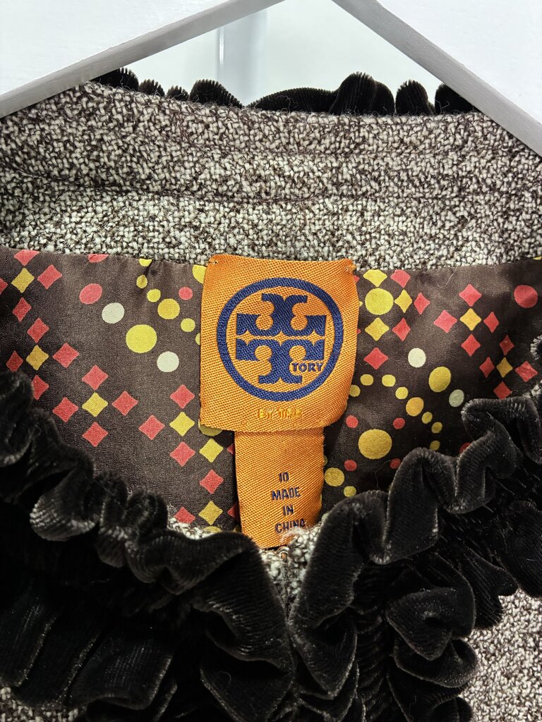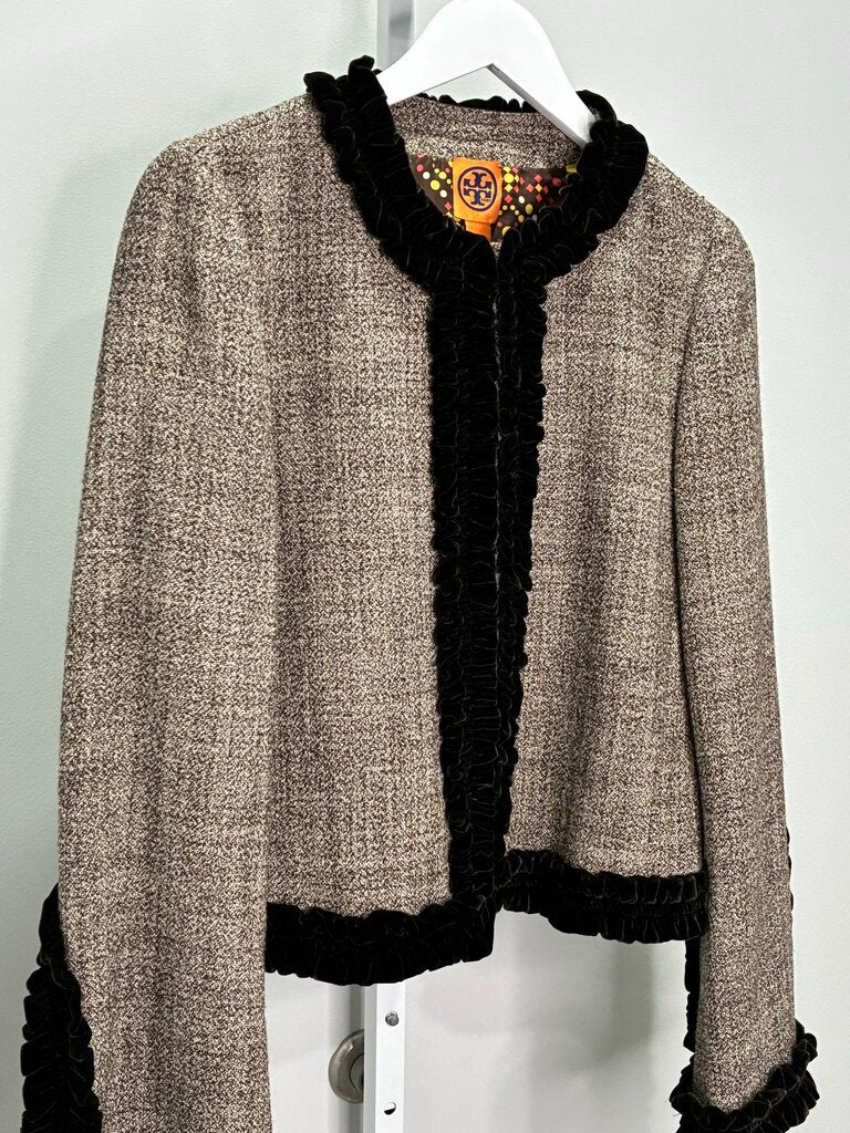 Tory Burch Tweed Velvet Trim Collarless Jacket