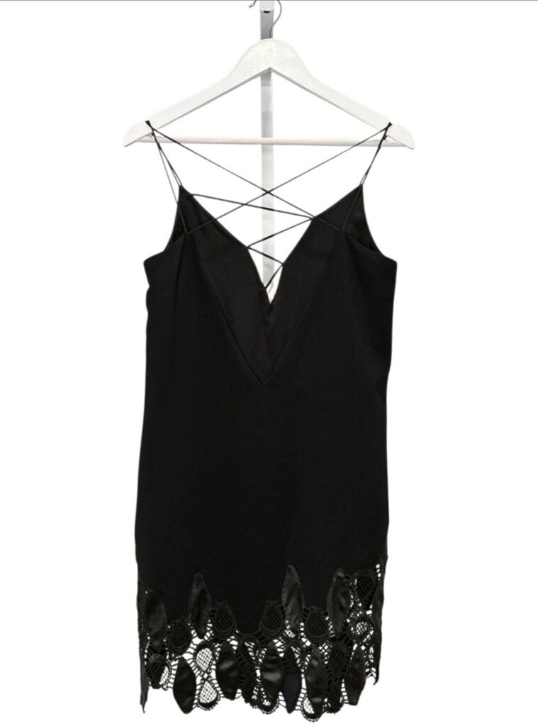 Versace Spring/Summer 2013 Runway Leather & Lace Trim Open-Back Mini Dress – Size 44 (Black)