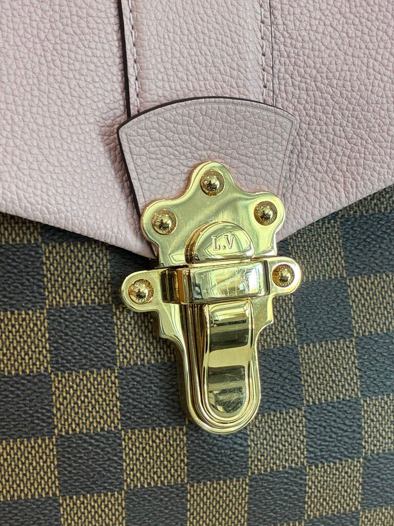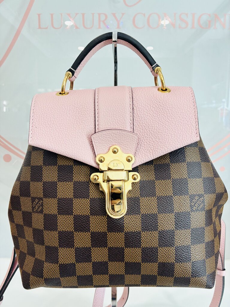 A chic, feminine twist on an LV favorite. This Louis Vuitton Clapton Backpack pairs classic Damier Ebene coated canvas with Magnolia pink grained leather for that soft, elevated contrast everyone loves. Structured, lightweight, and effortlessly stylish, it transitions from top-handle to backpack with ease thanks to the adjustable removable straps.