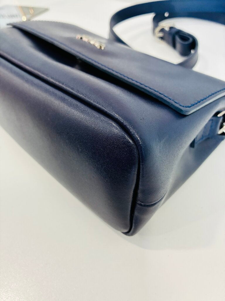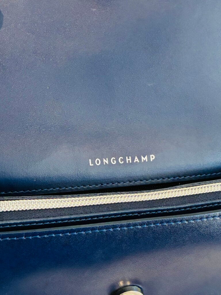 Longchamp Honore Rosato 404 Flap Leather Crossbody Bag – Navy Blue with Silver Hardware