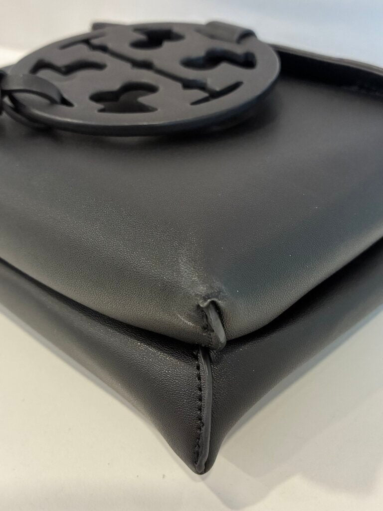 Elevate your everyday style with the Tory Burch Miller Leather Crossbody Bag, beautifully crafted from smooth black leather and detailed with the brand’s iconic cutout logo medallion and a knotted leather tassel accenting the flap. A hidden magnetic closure secures the compact silhouette, while an adjustable crossbody strap and gold-tone hardware add a refined touch.