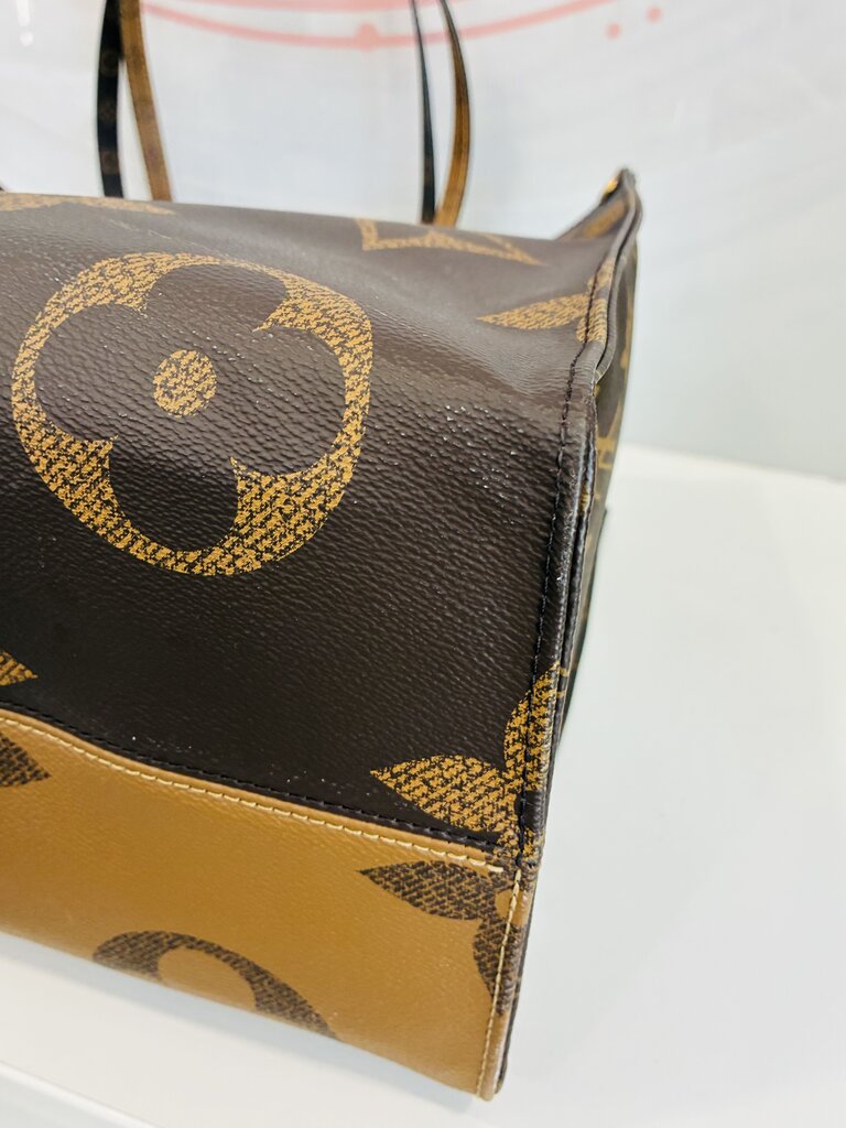 Bold, modern, and unmistakably Louis Vuitton, this coveted OnTheGo GM features the striking Reverse Monogram Giant pattern across durable coated canvas. Designed for daily wear, travel, and polished on-the-go style, it combines structure with effortless functionality.