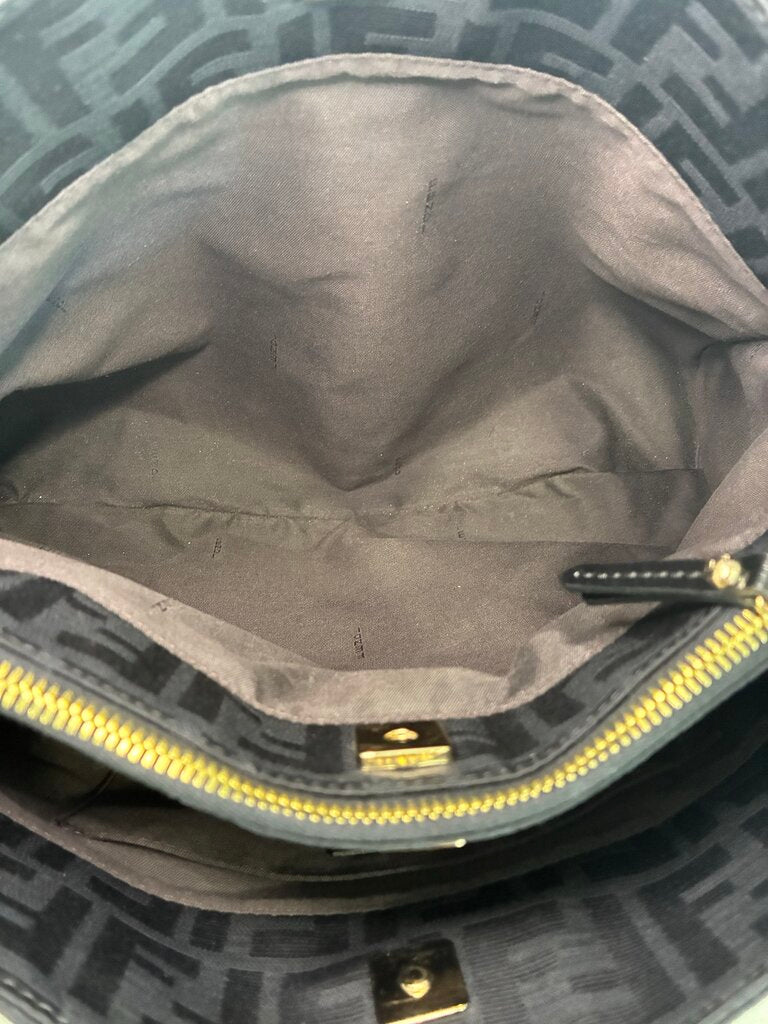 Effortless style meets everyday sophistication in this sleek and versatile tote from Fendi. Rendered in the label’s iconic Zucca monogram canvas in sophisticated black, the bag is trimmed in smooth black leather and accented with polished silver-tone hardware, including a signature Fendi charm at the handle ring. The flat leather top handles offer comfortable carry, while the structured silhouette opens at the top to reveal a spacious, fabric-lined interior with a convenient zip pocket for essentials.