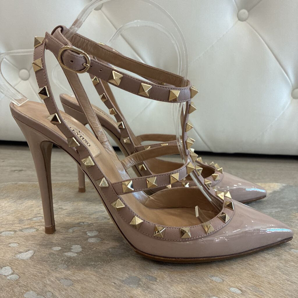 Valentino Garavani Patent Nappa Rockstud Ankle Strap Pumps – Size 41