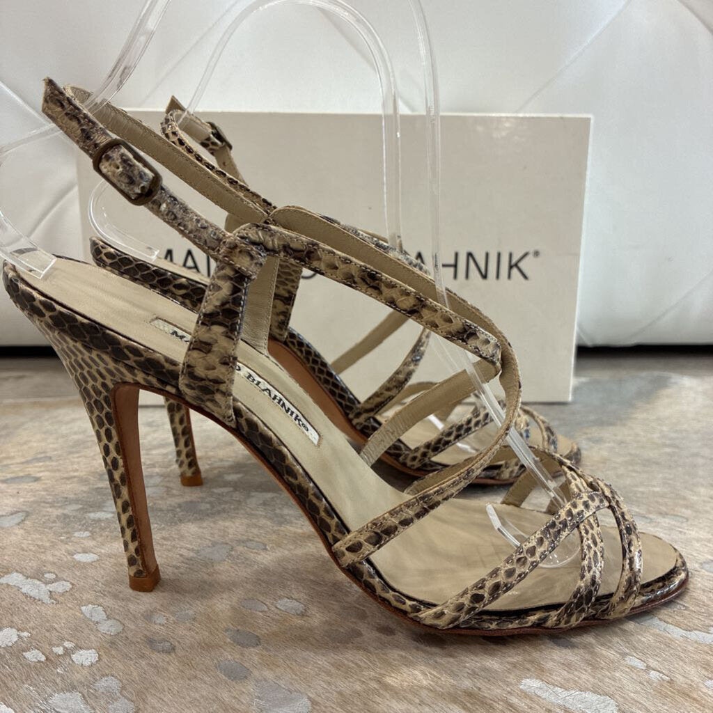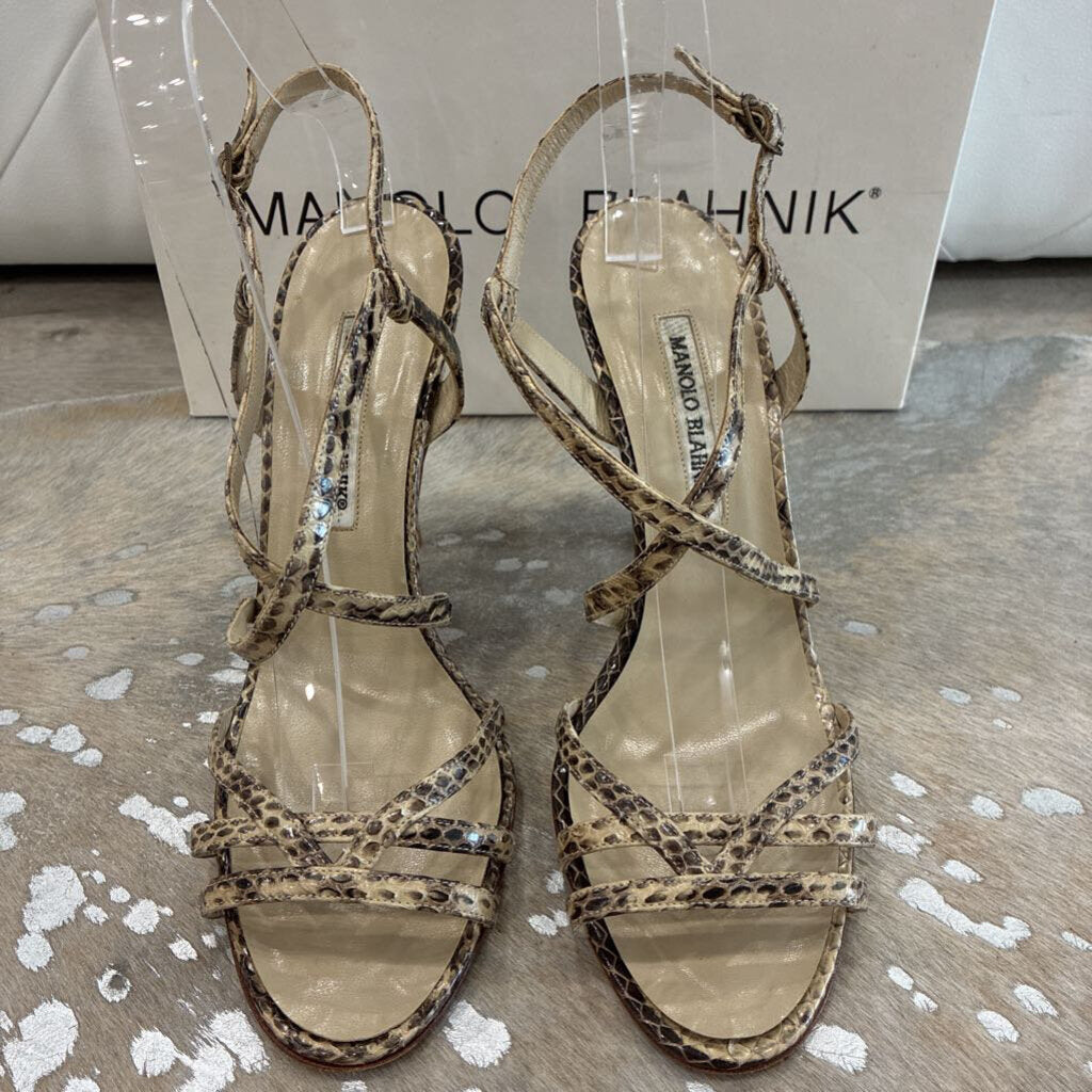 Manolo Blahnik Snakeskin Strappy Sandal Heels – Size 38.5