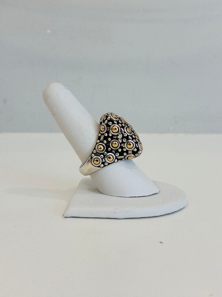 John Hardy Jaisalmer Dot Sterling Silver & 18K Yellow Gold Ring – Size 8.5