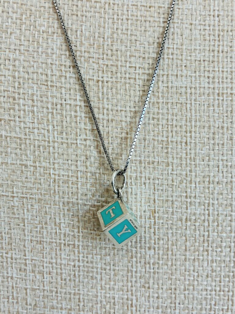 Add a touch of timeless elegance to your collection with this authentic Tiffany & Co. Silver Enamel Block Cube Charm, beautifully paired with a complementary unbranded sterling silver chain.