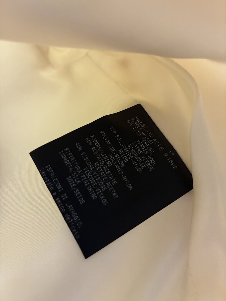 Elegant and effortlessly chic, this La Perla cropped jacket showcases the brand’s refined craftsmanship and impeccable attention to detail. Rendered in a soft cream hue, it is tailored from a luxurious blend of wool and nylon, with a smooth acetate–viscose lining and 100% silk finishing for a delicate, feminine touch.