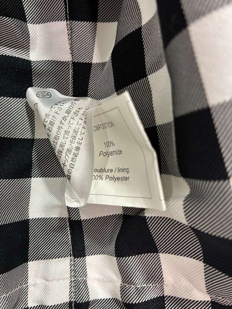 • Black/white check interior lining