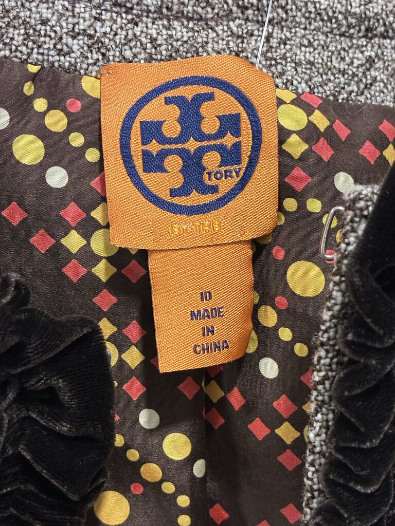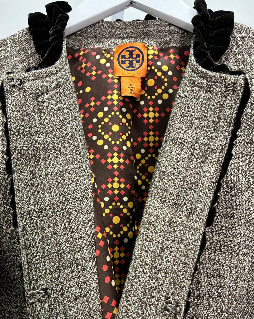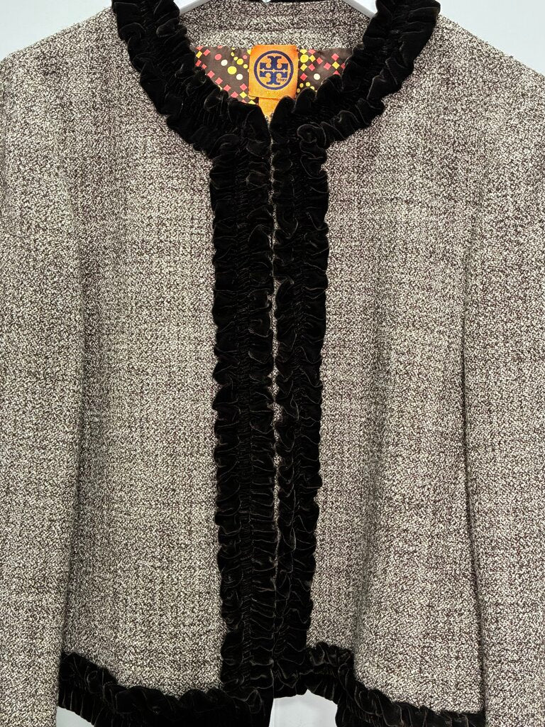 Tory Burch Tweed Velvet Trim Collarless Jacket