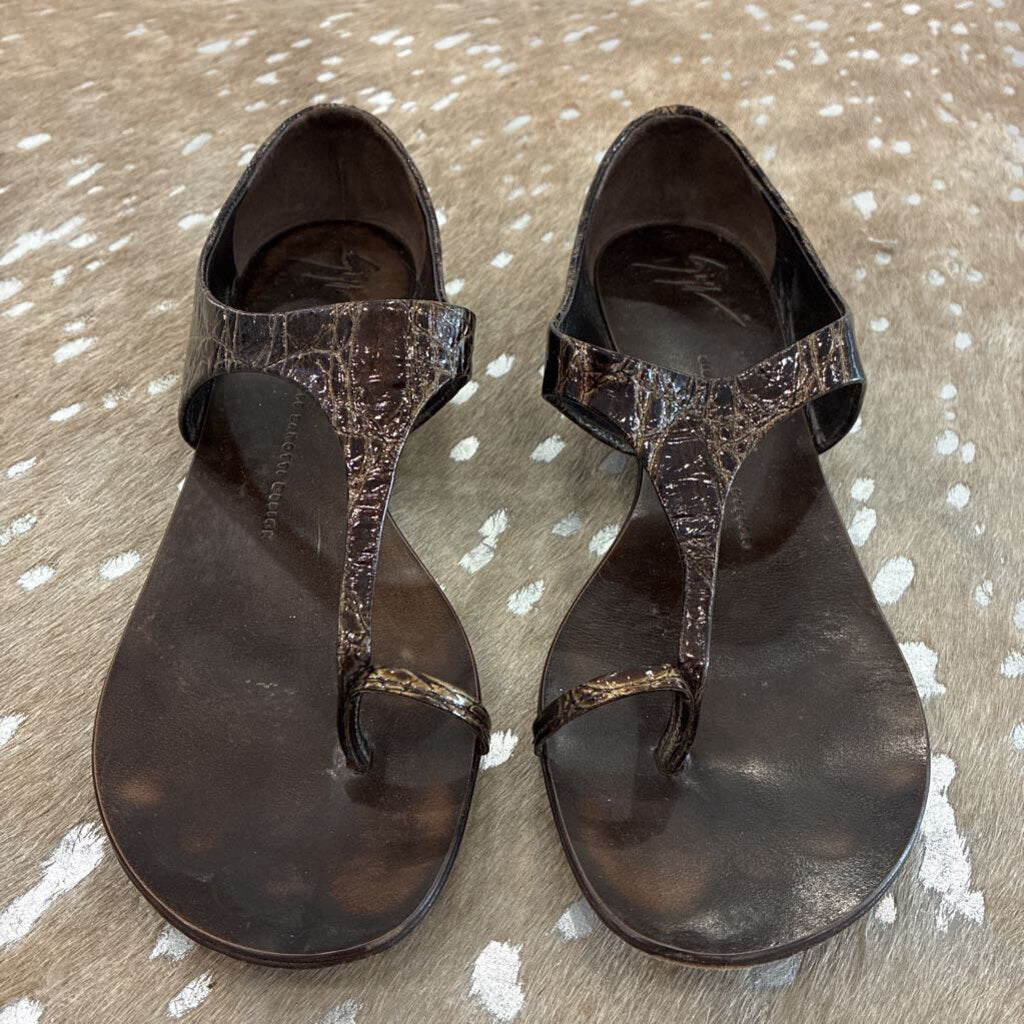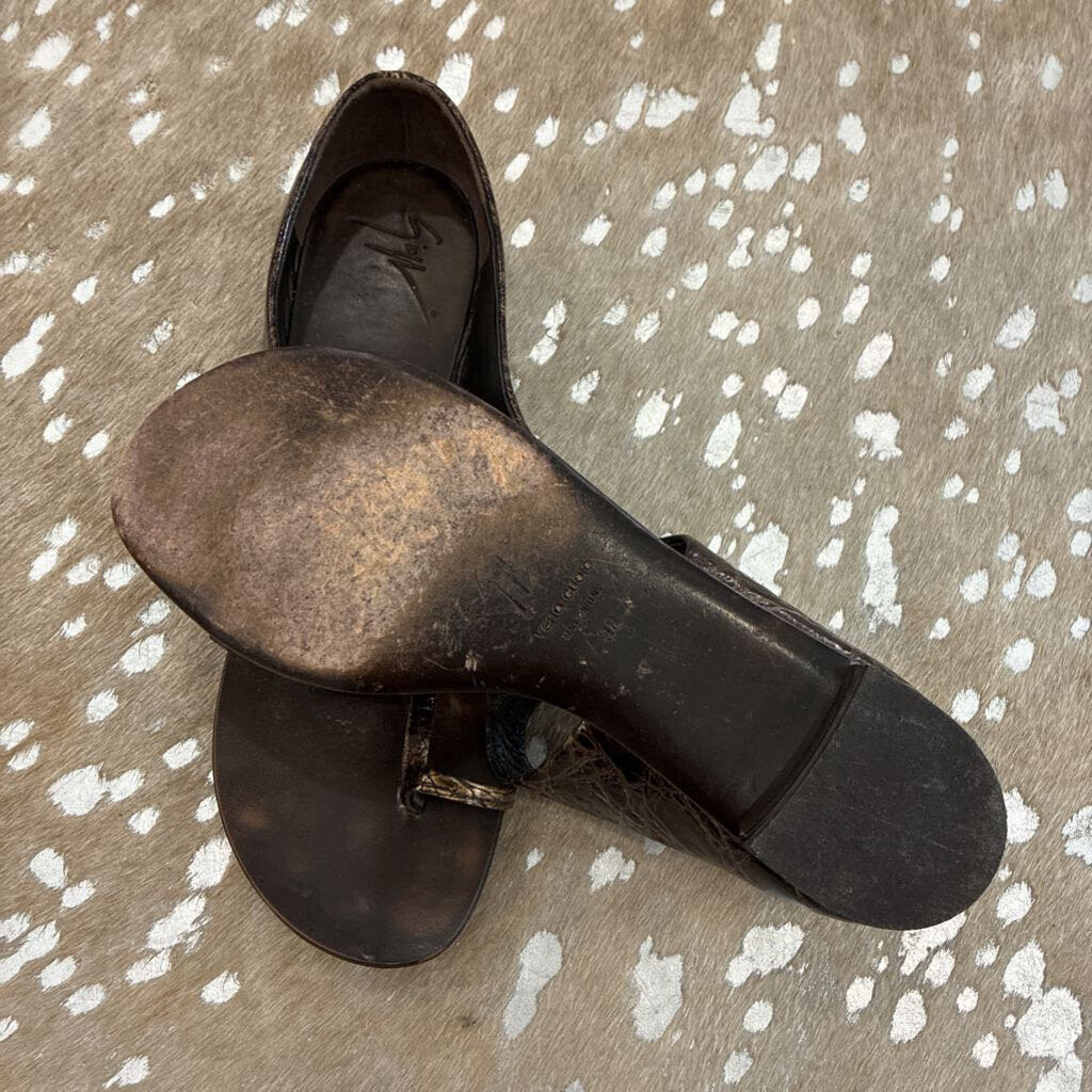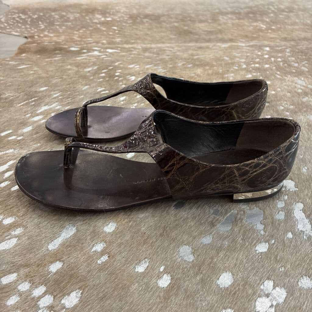 Crocodile Print Leather Thong Sandal