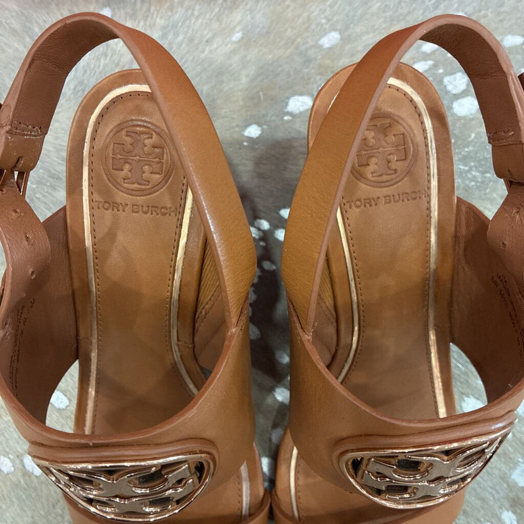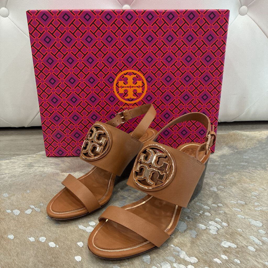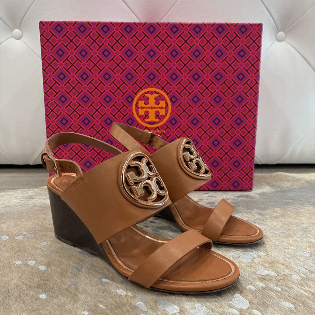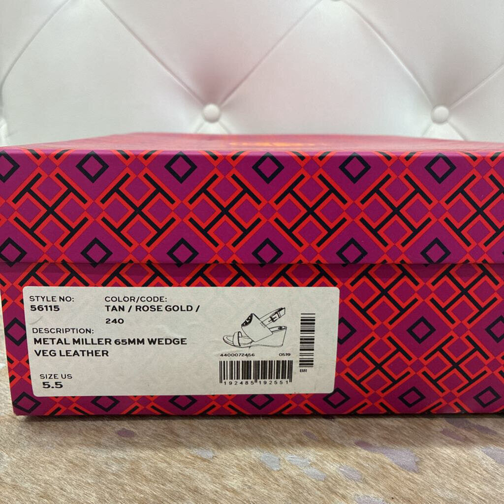 Tory Burch Metal Miller 65MM Wedge – Tan / Rose Gold – Size 5.5 – Gently Preloved with Box