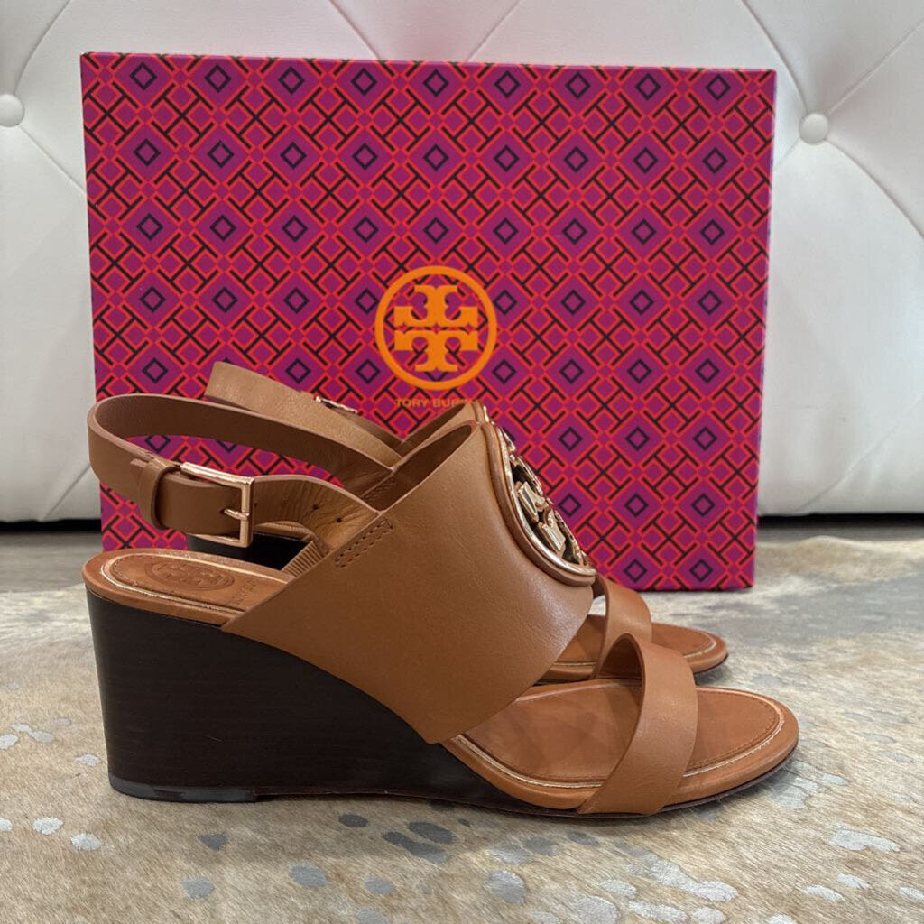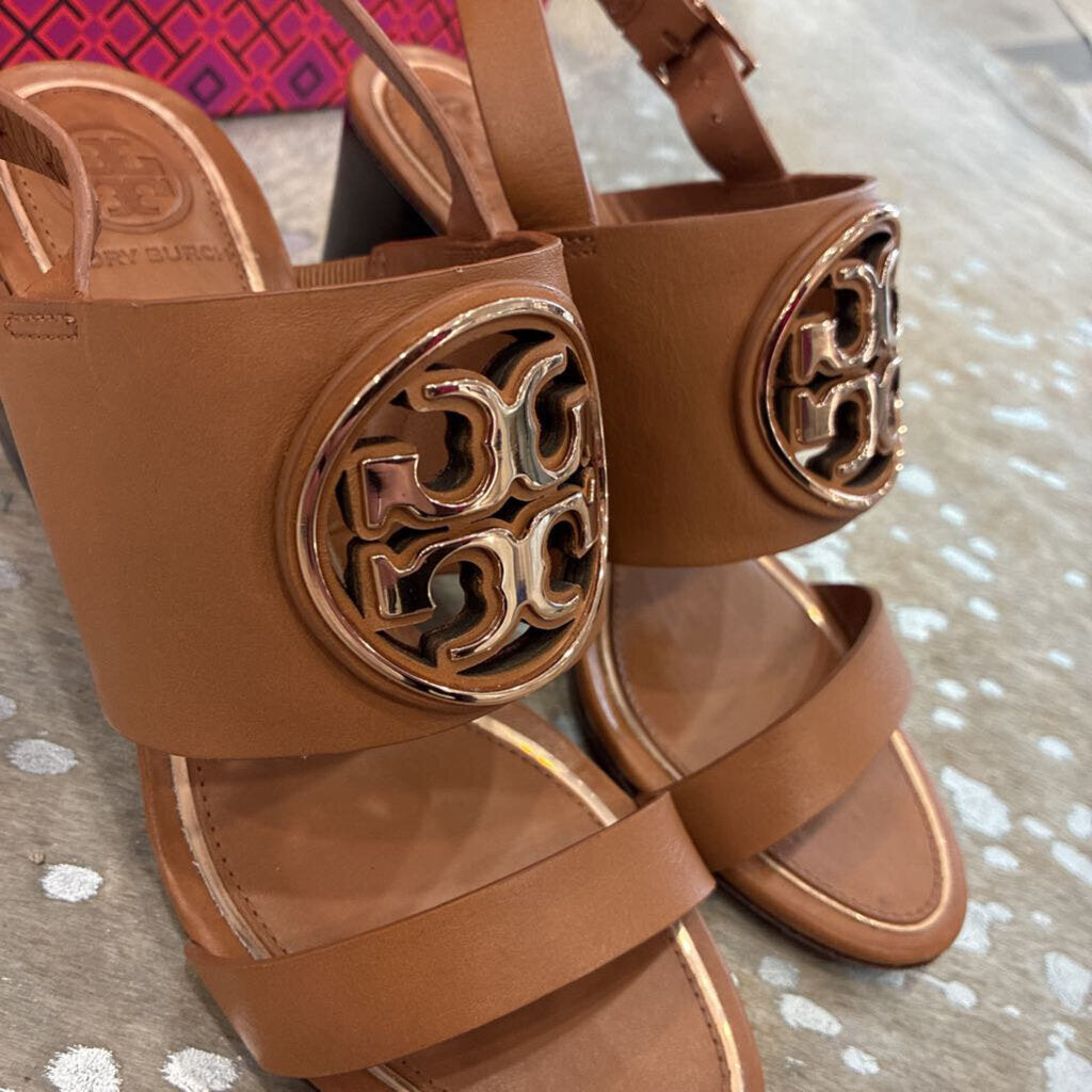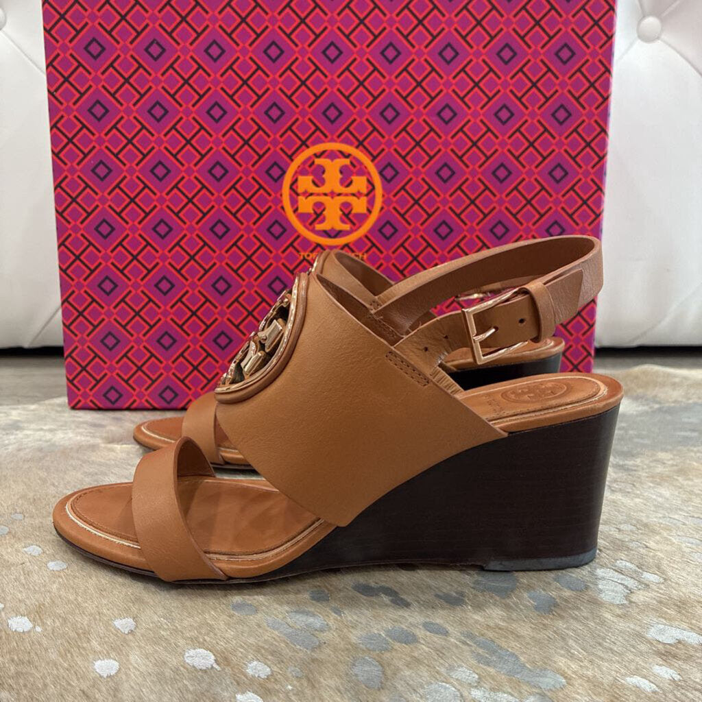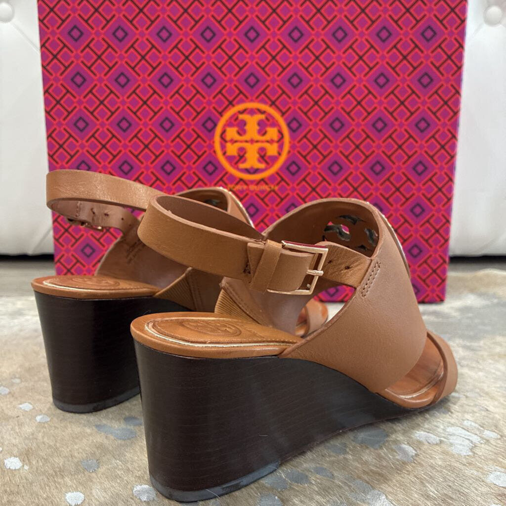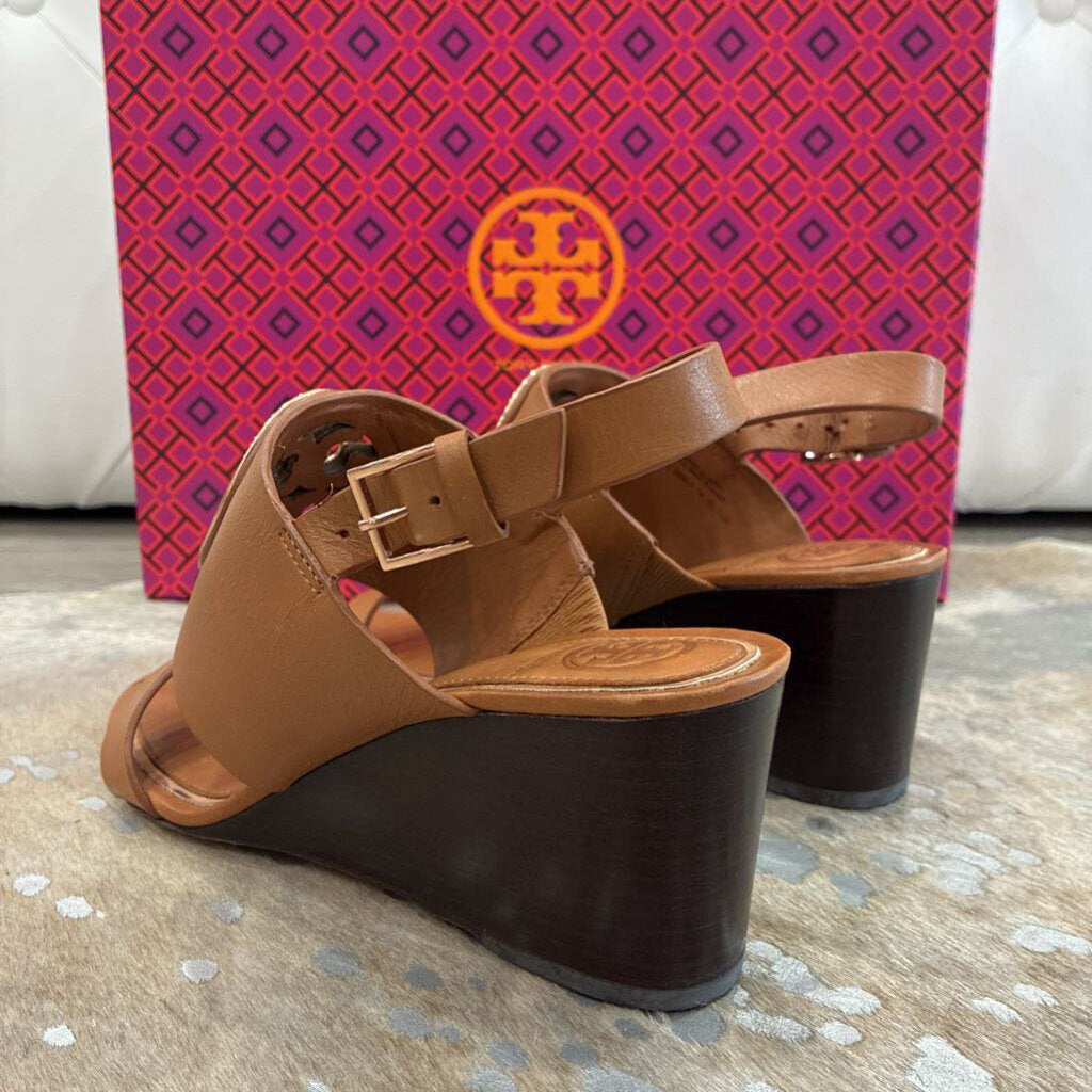 Tory Burch Metal Miller 65MM Wedge – Tan / Rose Gold – Size 5.5 – Gently Preloved with Box