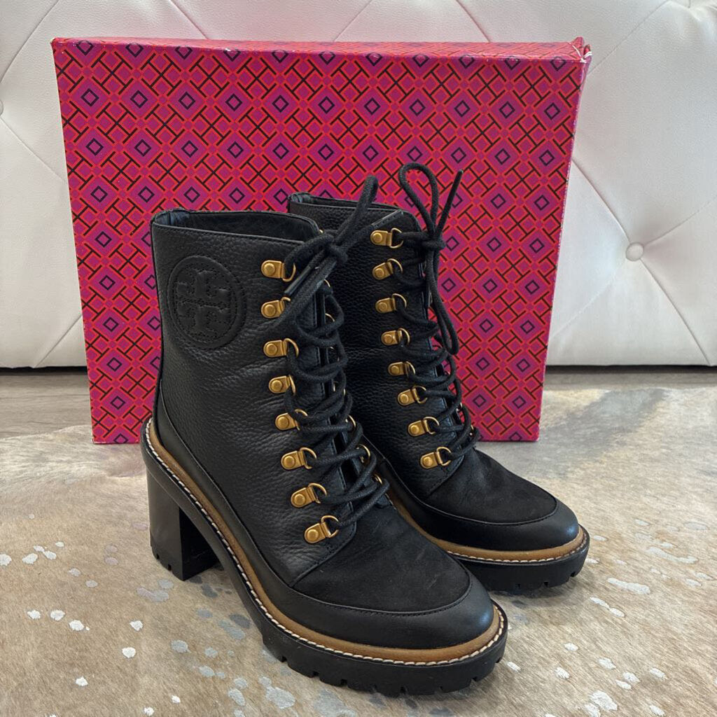 Tory Burch Metal Miller Lug Sole Bootie – Tumbled Leather (Black) – Size 6 – With Box