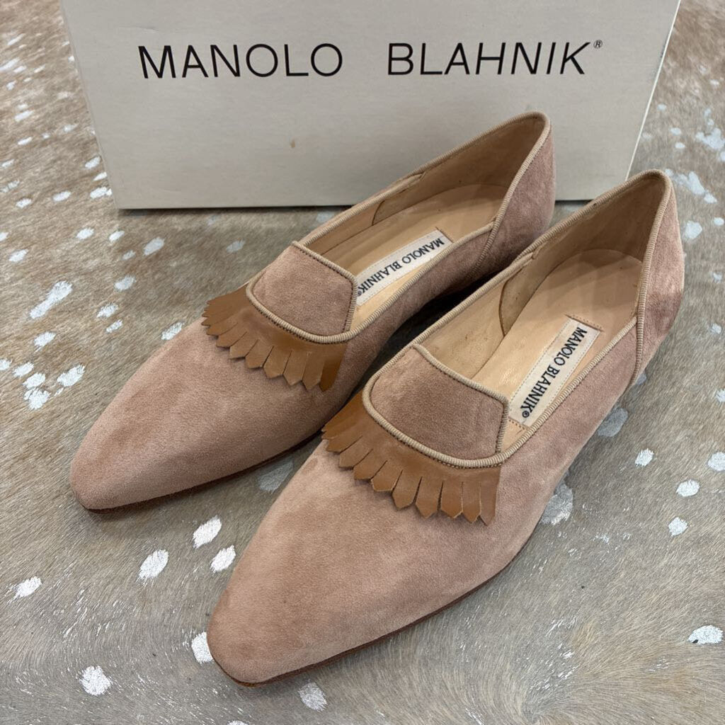 Manolo Blahnik Suede Kiltie Venetian Flats – Size 38