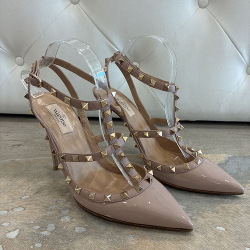 Patent Nappa Rockstud Ankle Strap 100mm Pumps Retail 1190