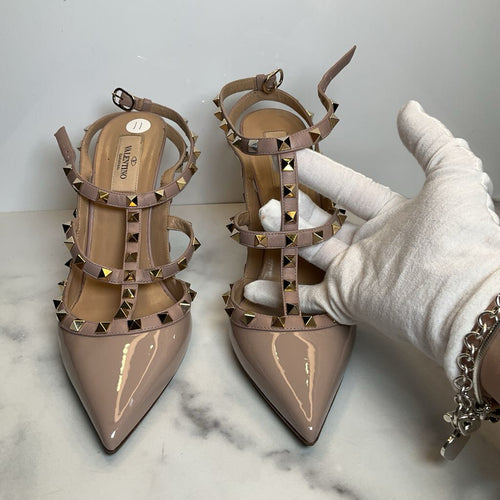 Patent Nappa Rockstud Ankle Strap 100mm Pumps Retail 1190
