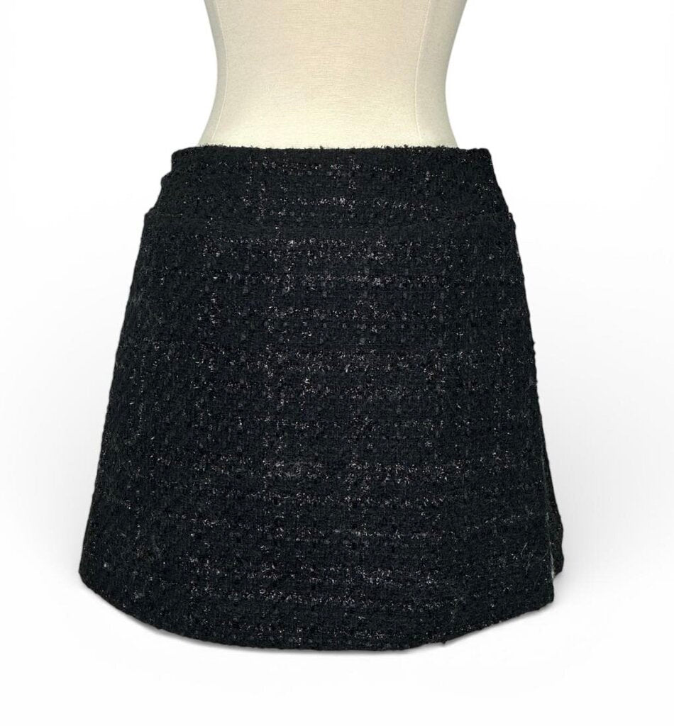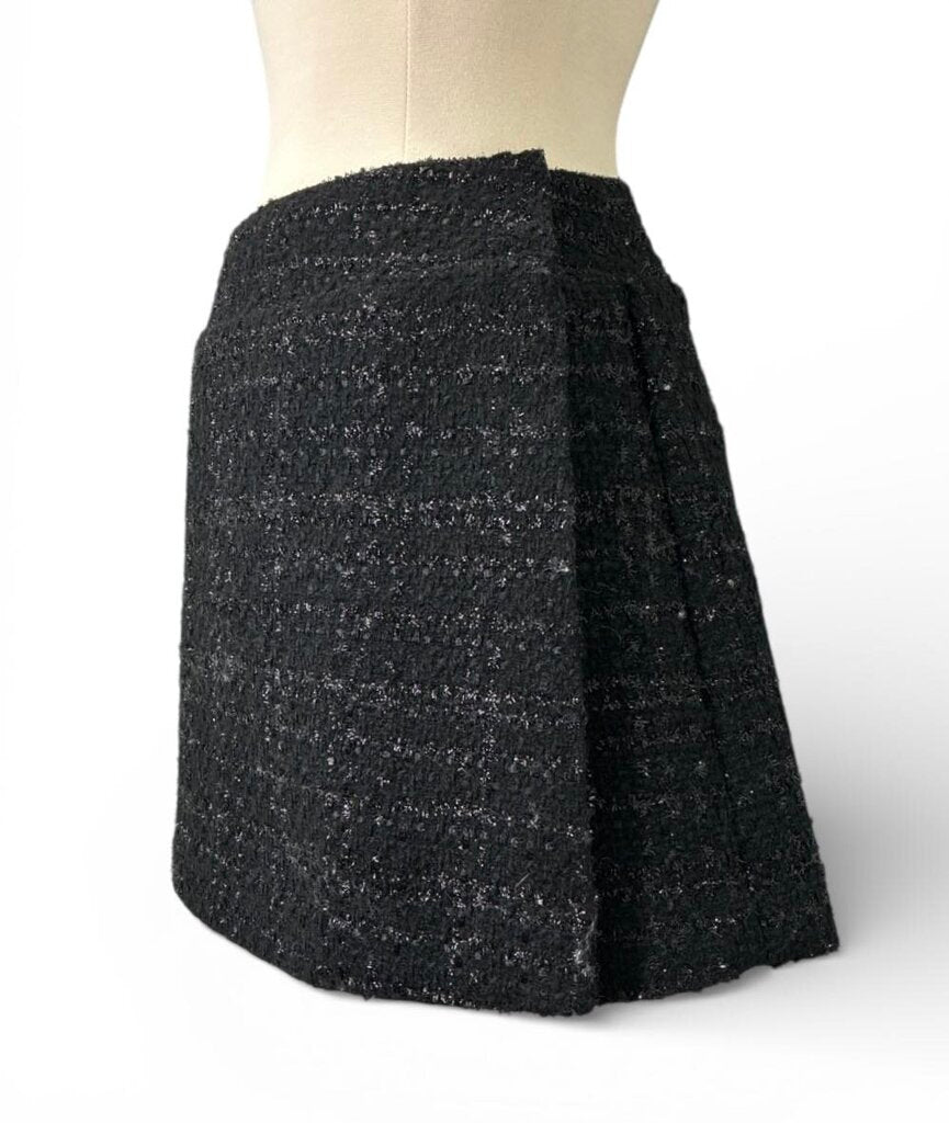 Chic and timeless, the Hill House Tatiana tweed skirt is a refined wardrobe staple with a modern edge. Crafted from a textured tweed blend, this wrap-style mini skirt features a classic black base with subtle sparkly tinsel interwoven throughout for a touch of understated shine.