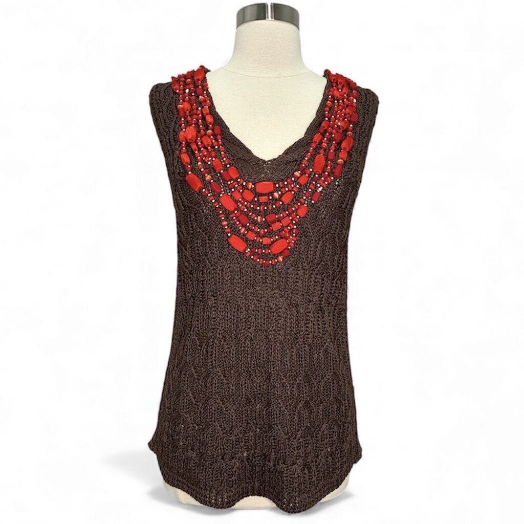 Oscar de la Renta Beaded Crochet Sweater Tank Top – Size Medium