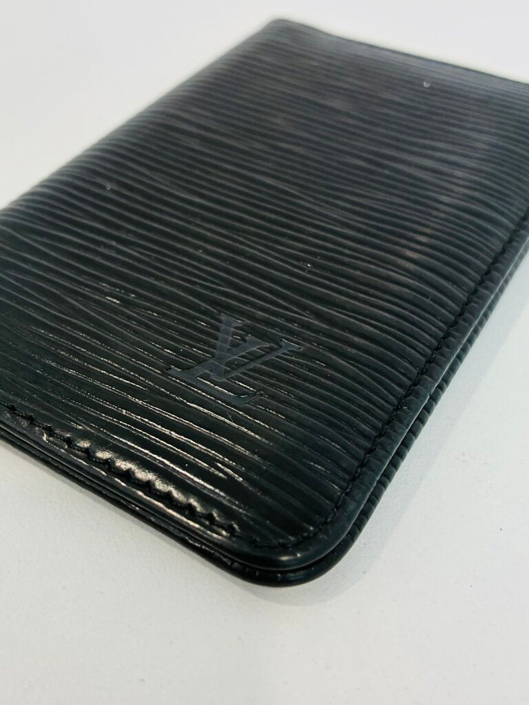 Its compact silhouette slips easily into any pocket while offering ample space for essentials — from credit cards and folded bills to receipts and important papers. Durable, structured, and timeless, Epi leather is known for its distinctive textured grain and long-lasting quality. Gently preloved and in excellent condition.