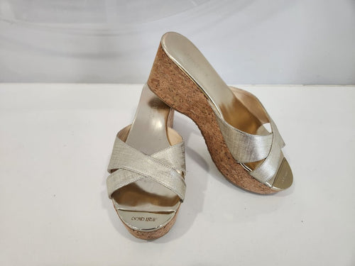 Crumpled Calfskin Grosgrain Pearl Wedge Sandals