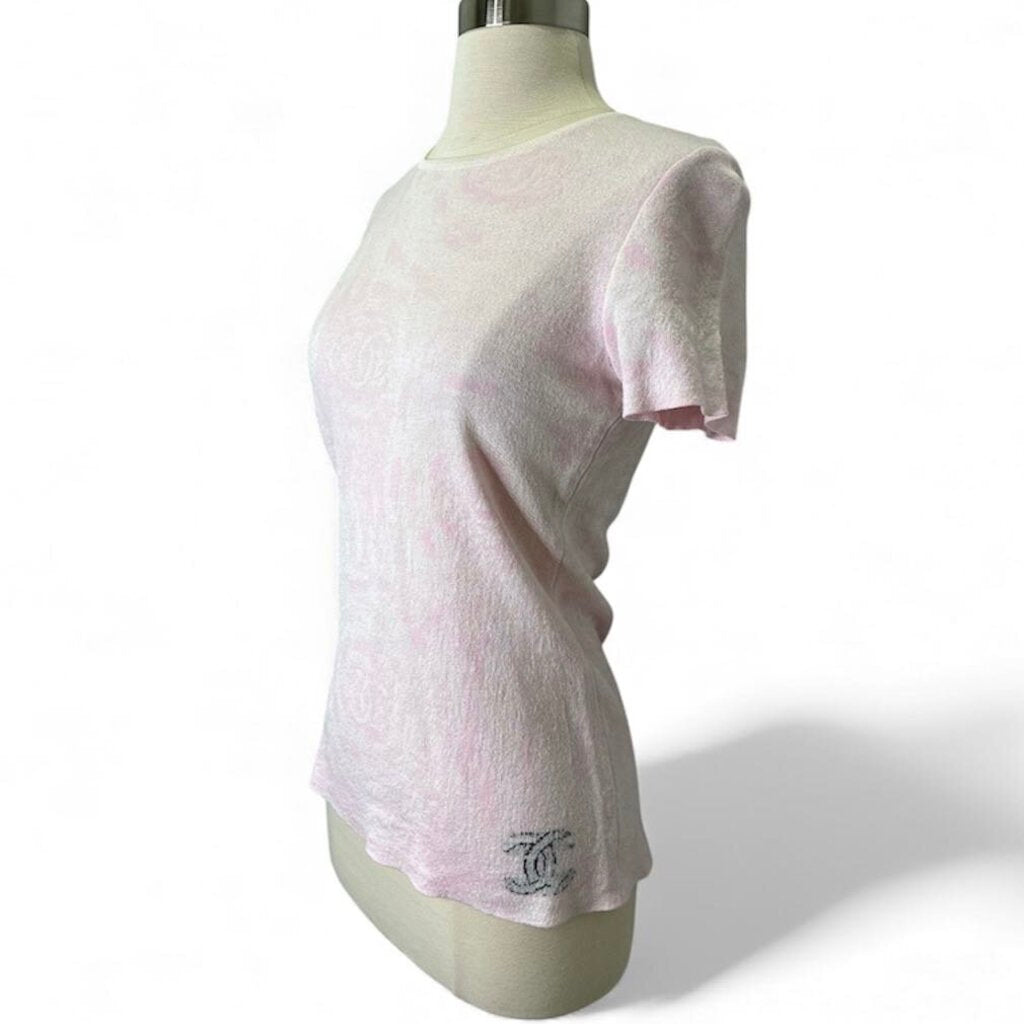 Chanel Vintage 09C CC Logo Knit T-Shirt – Rose Pink & White (Preloved)