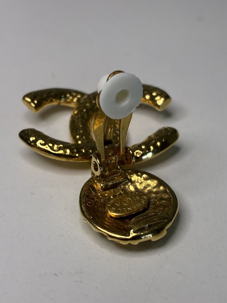 Elevate your style with these pristine Vintage Chanel CC Textured Clip-On Earrings from the exclusive 95A Autumn 1995 collection. Featuring the iconic interlocking CC logo, these earrings are crafted with meticulous attention to detail and finished with rich gold plating for a luxurious shine.