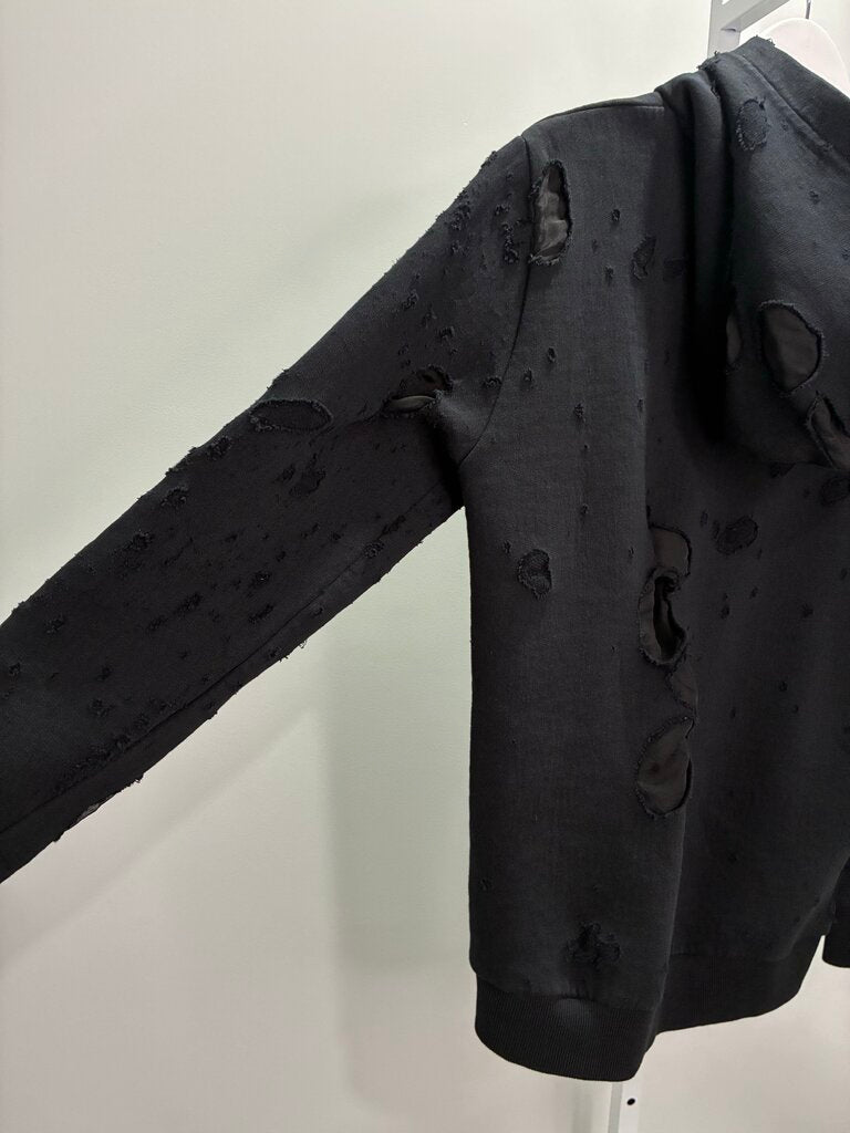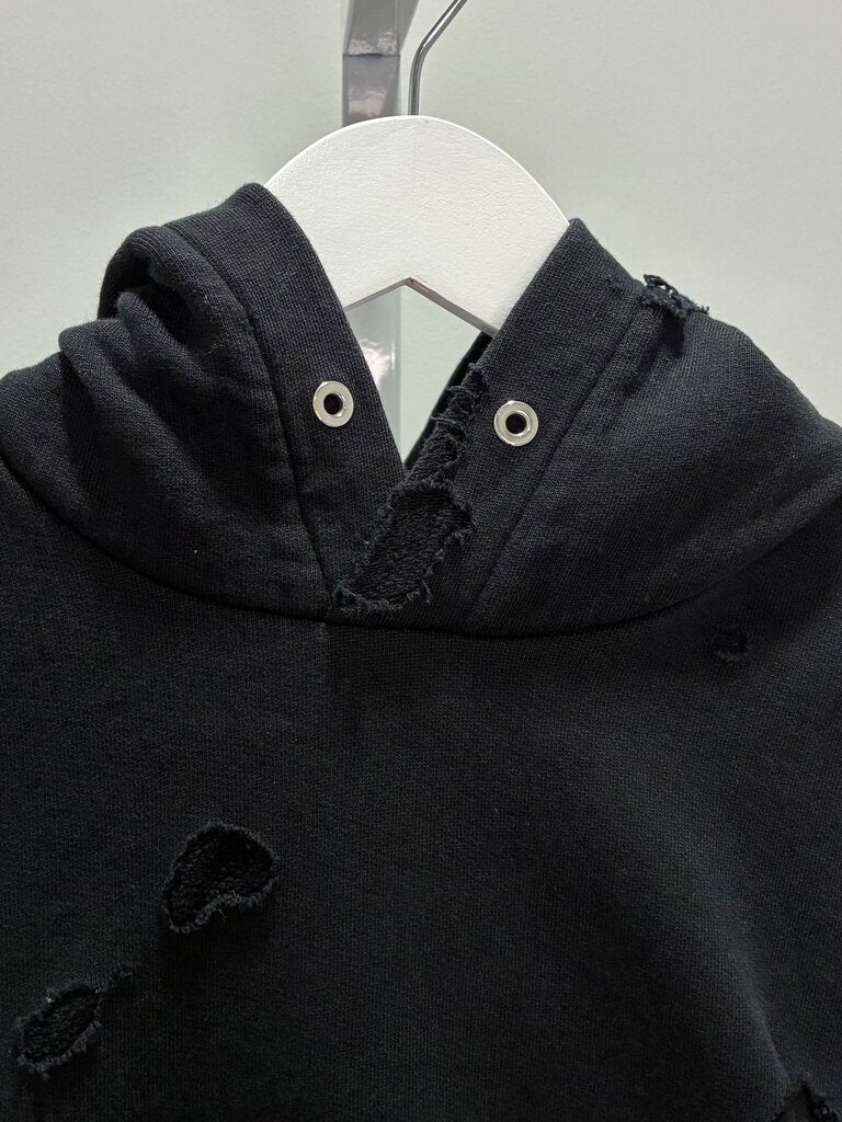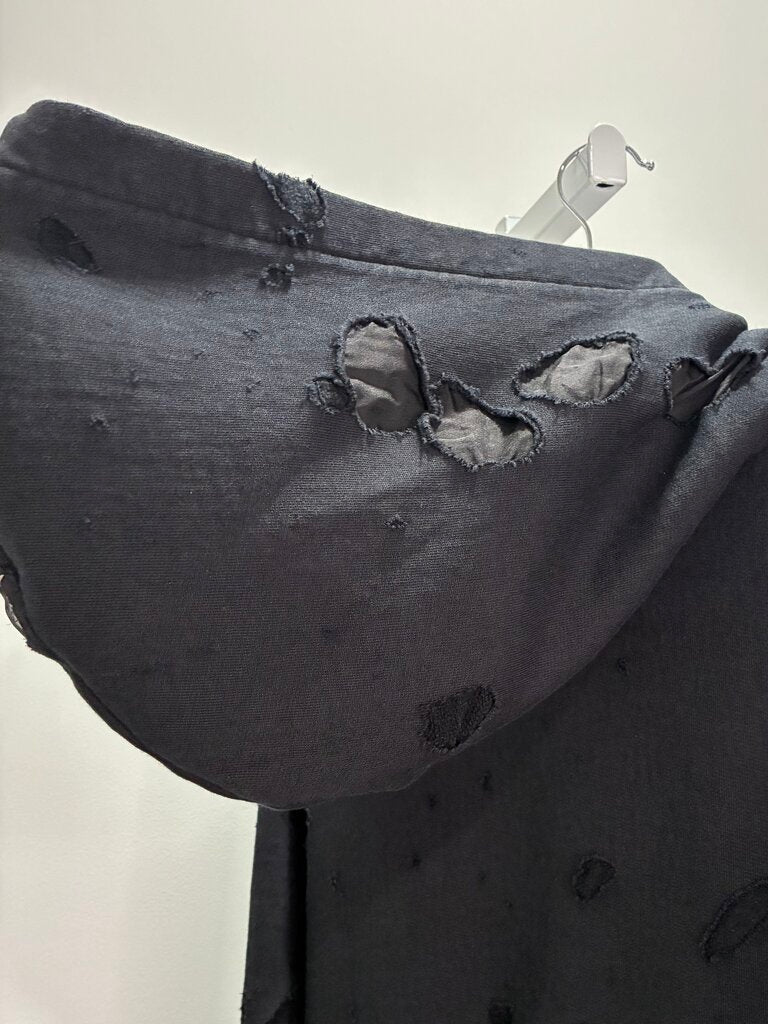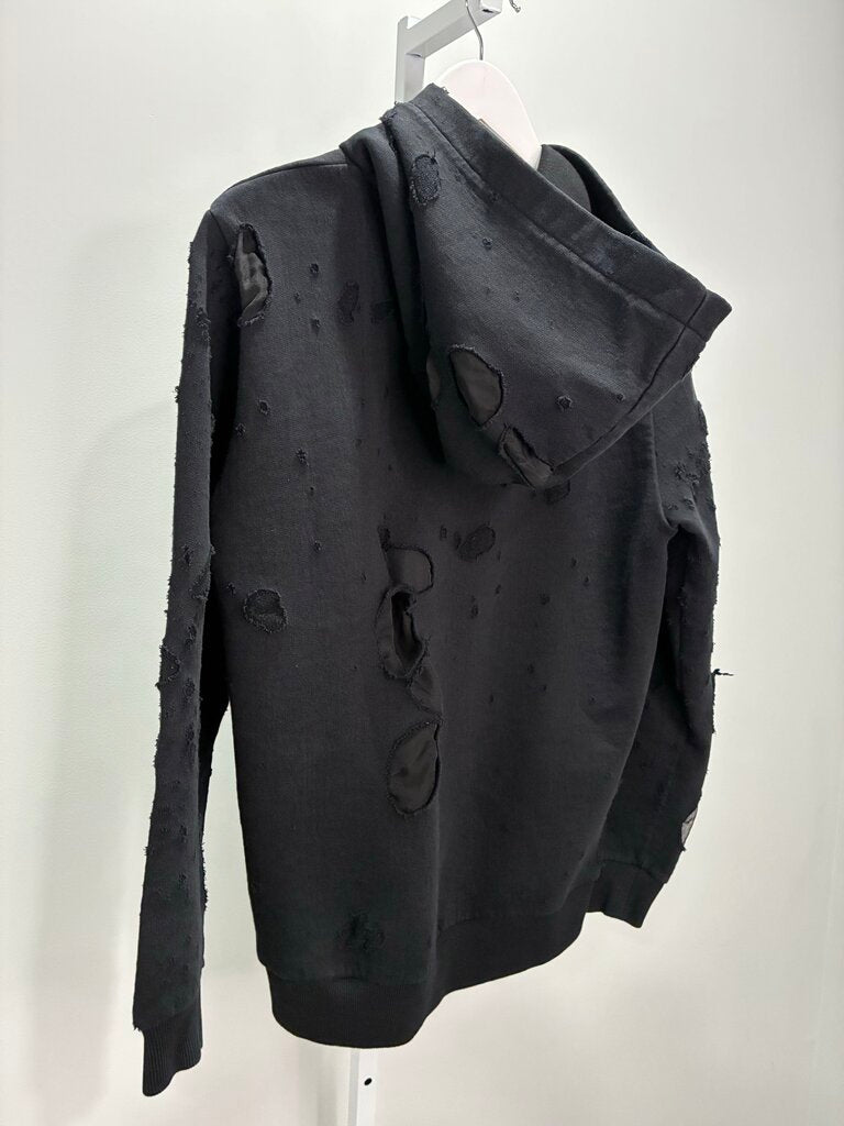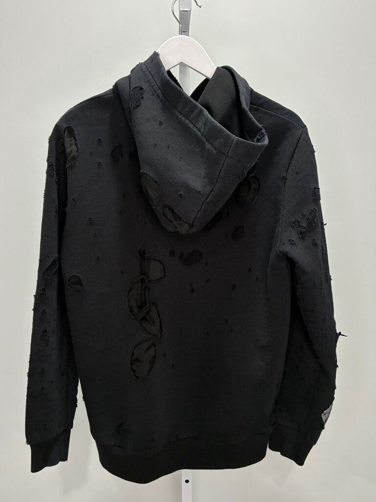 Please Note: Designed with ribbed cuffs and hem, this piece maintains a clean, tailored fit despite its distressed aesthetic. The hoodie is in excellent condition, with no signs of wear and all design elements fully intact.