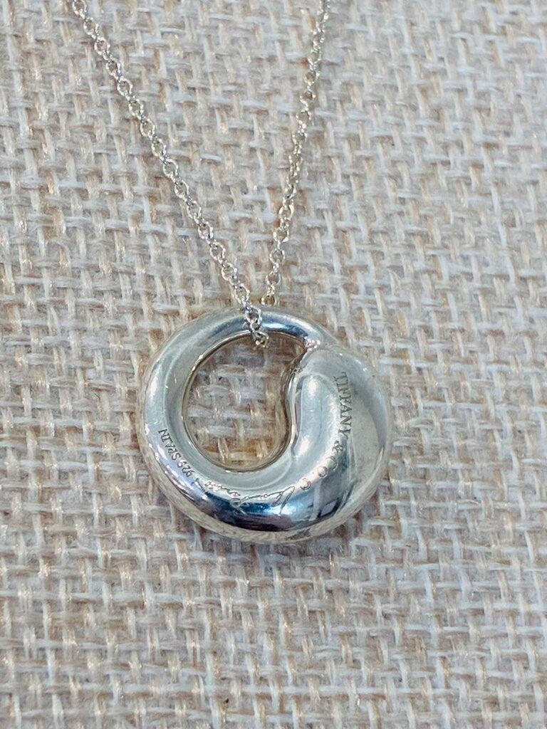 Timeless and elegant, this Elsa Peretti Eternal Circle Pendant for Tiffany & Co. is a true classic. Crafted in sterling silver, the minimalist open-circle design is a signature of Peretti’s iconic aesthetic — symbolizing eternity, wholeness, and effortless style.