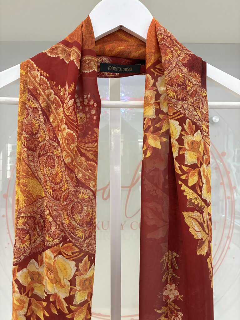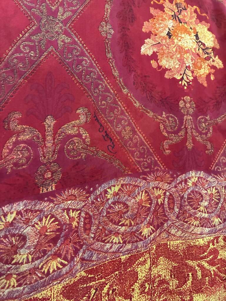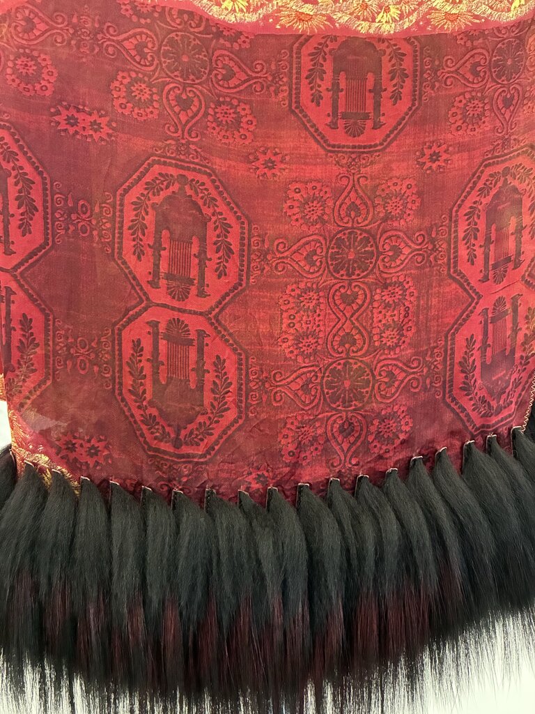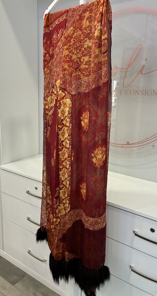 Floral and Paisley Silk and Fox Fur Scarf