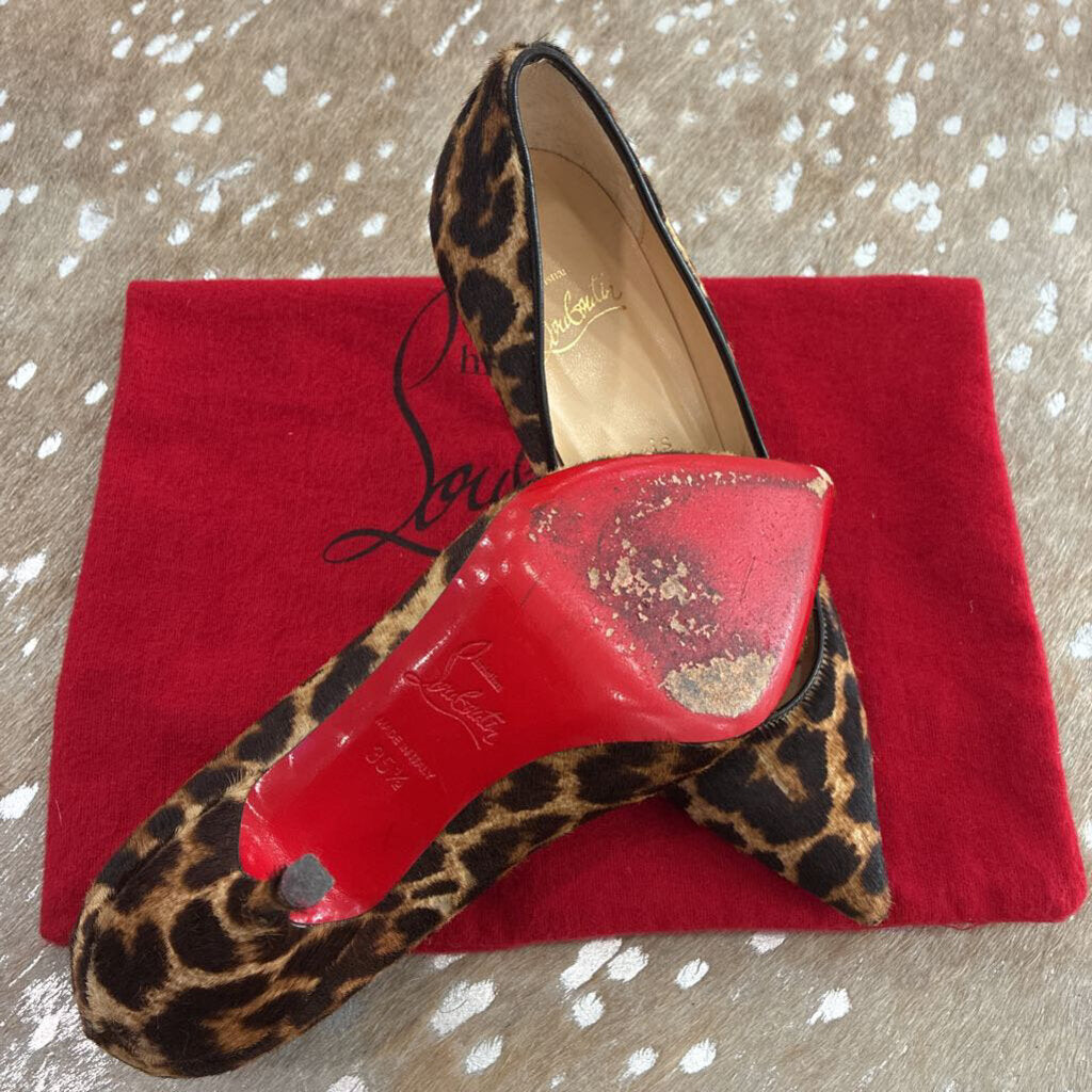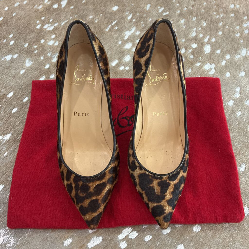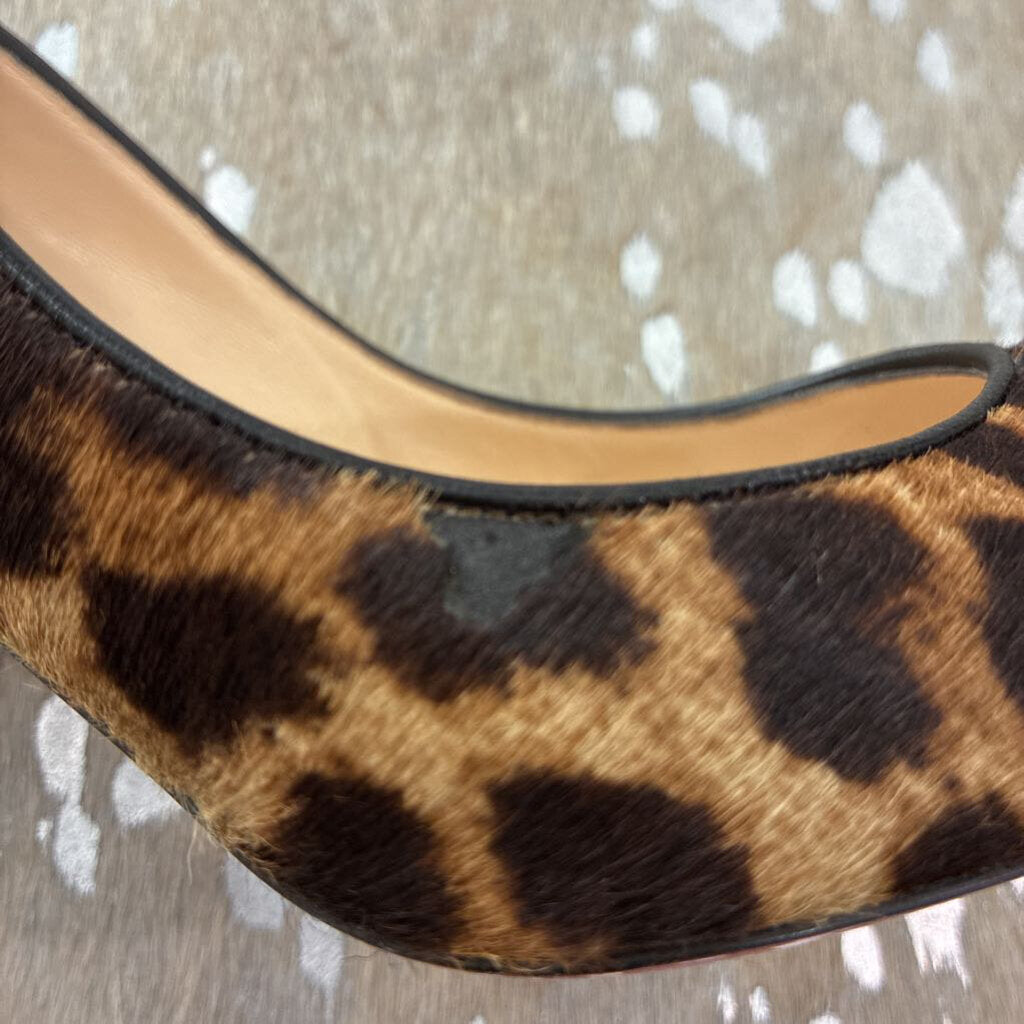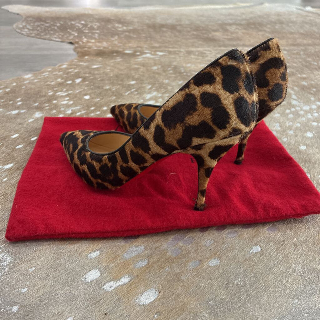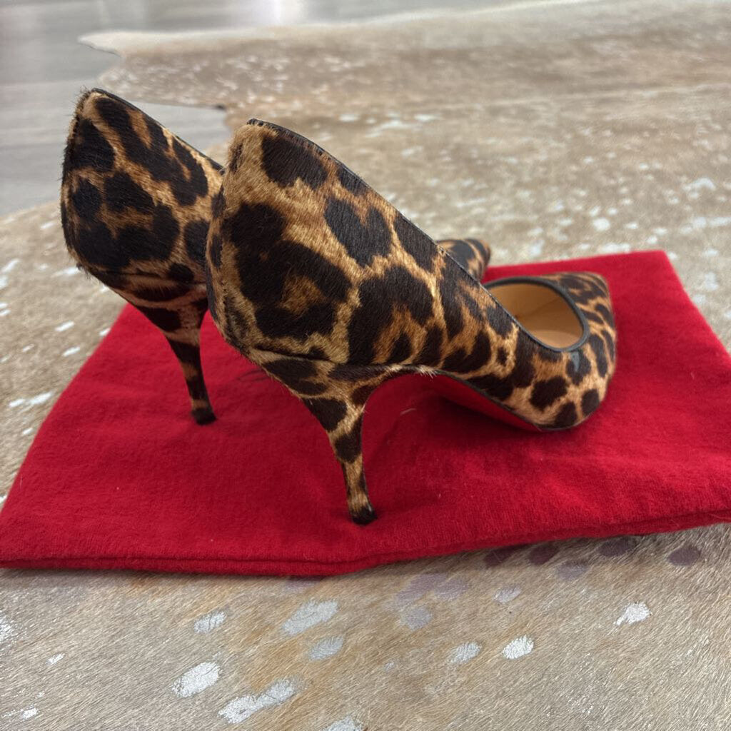 With its timeless silhouette, the Kate pump leopard velours envelops the foot with elegance. Elevated on a stiletto of 85mm, it reveals with each step the savoir-faire of the Maison Christian Louboutin.