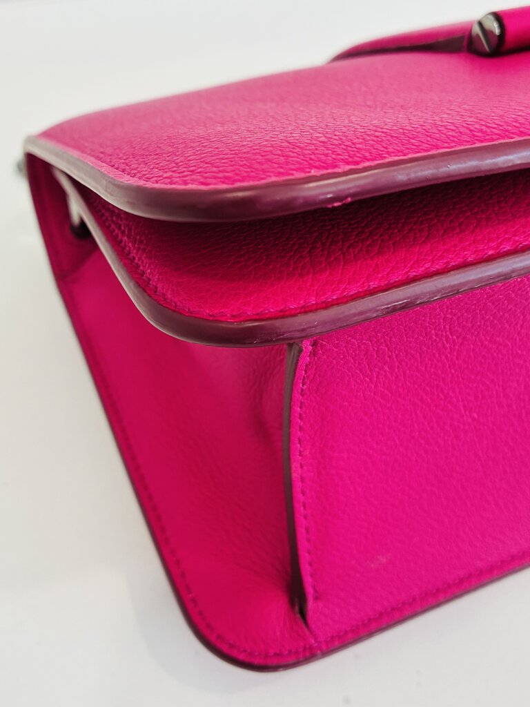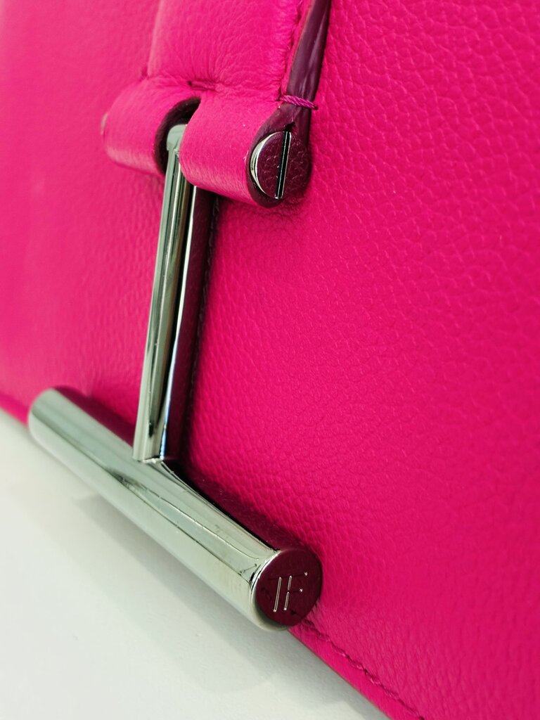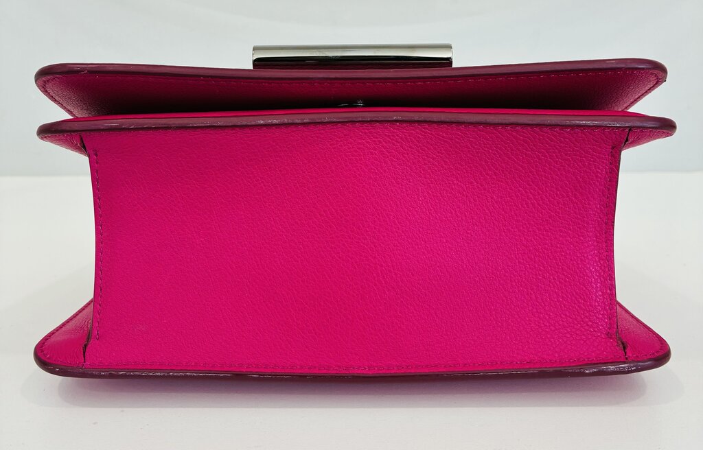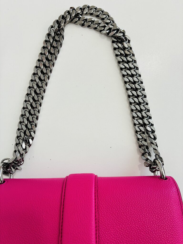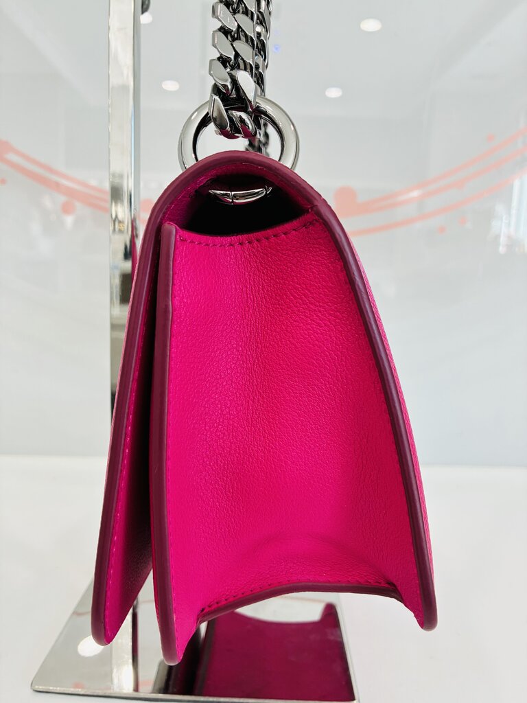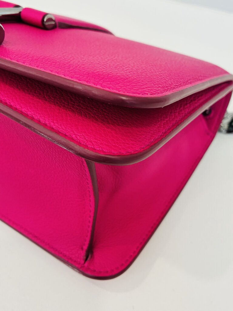 Serve sleek, modern luxury with this Tom Ford Tara Chain Crossbody in fuchsia paired with bold gunmetal silver chain hardware. The structured silhouette and signature T-bar flap closure give it that unmistakable Tom Ford edge, while the chain strap makes it effortless for day or night wear.