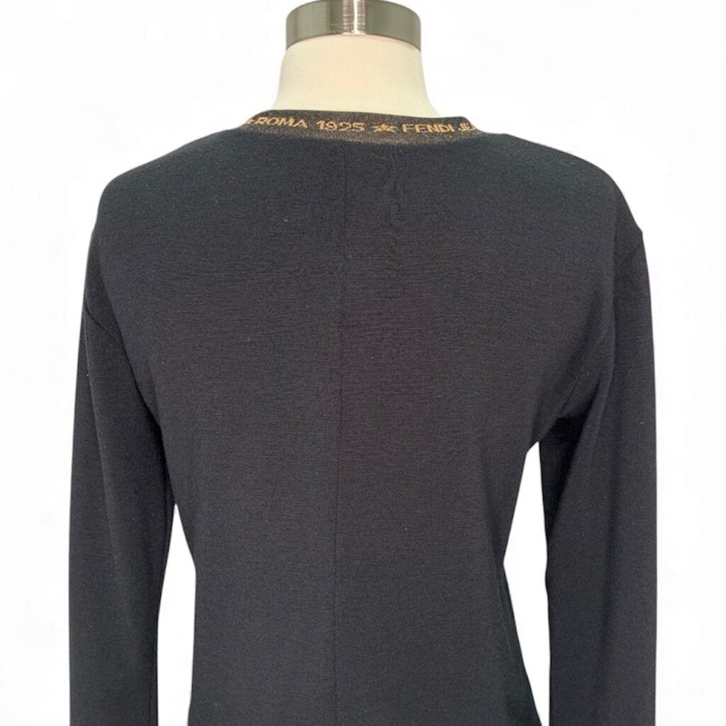 Fendi Wool Knit Logo Trim Cardigan – Size 42 / Medium