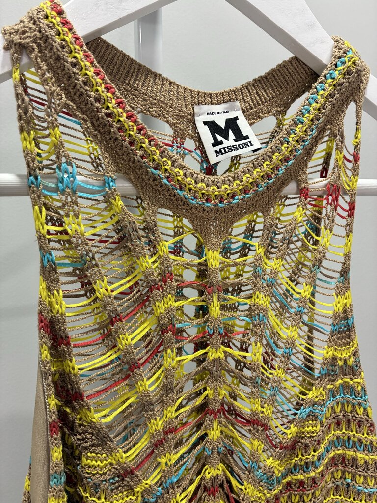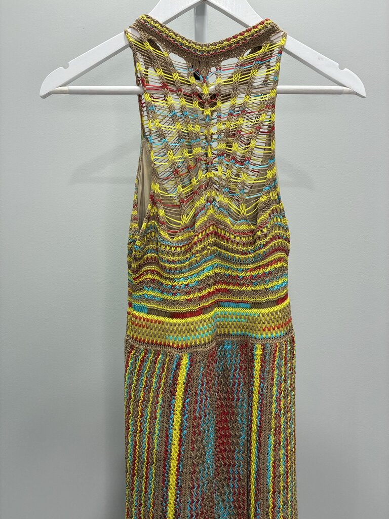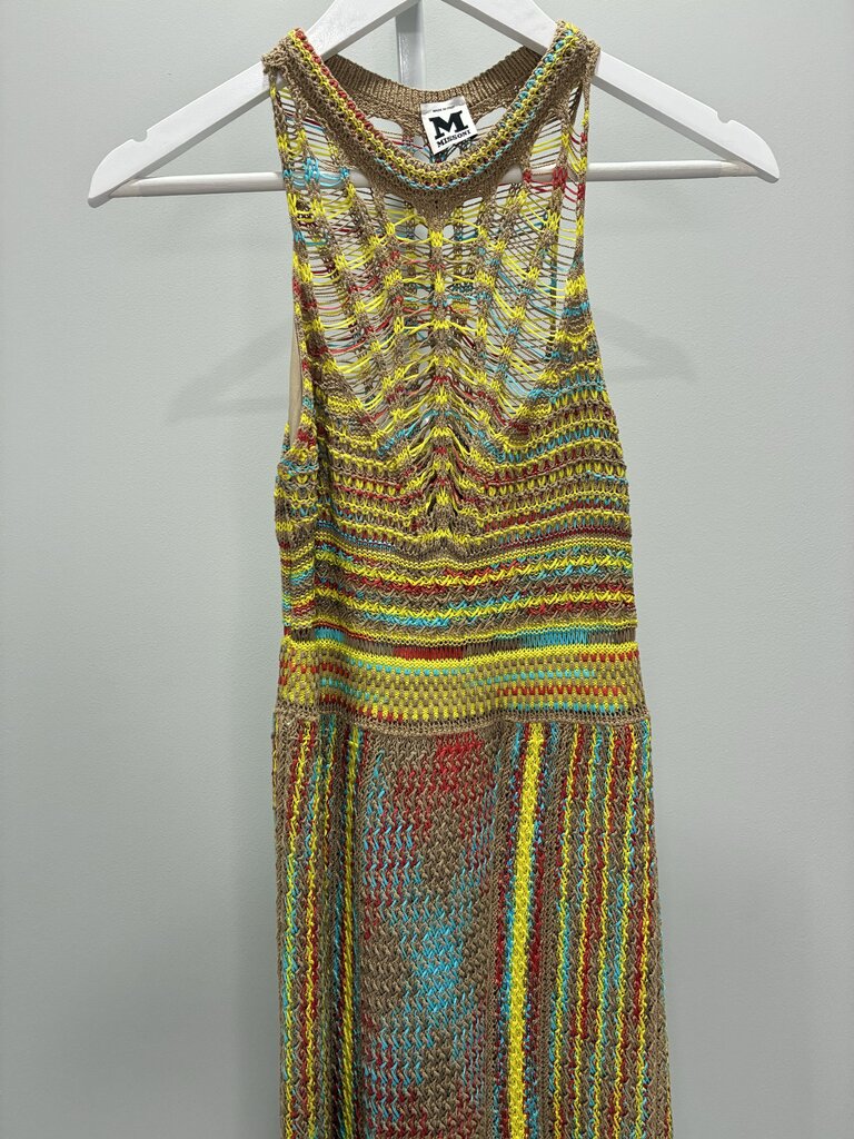 This is more than just a dress—it’s a statement. Whether styled with sandals for a daytime event or elevated with heels and gold accessories for evening, it’s a versatile, artful piece with unmistakable Missoni flair.